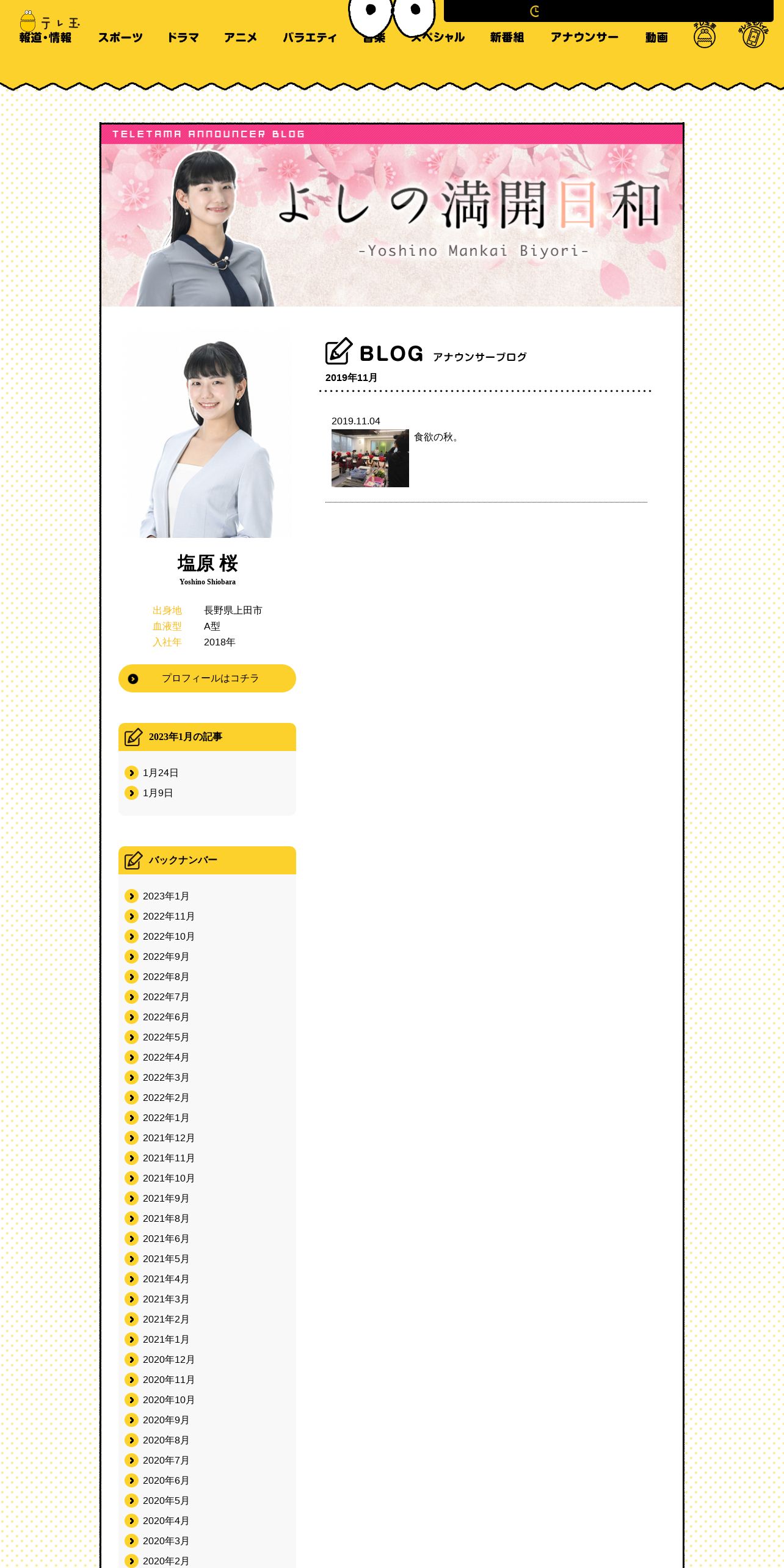 https://www.teletama.jp:443/announcer/shiobara/blog/201911.html