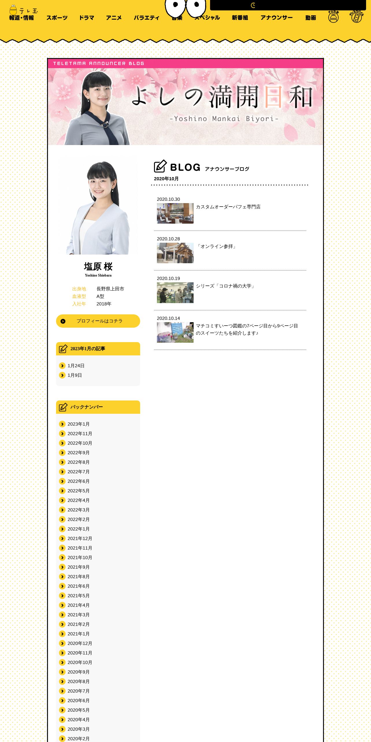 https://www.teletama.jp:443/announcer/shiobara/blog/202010.html