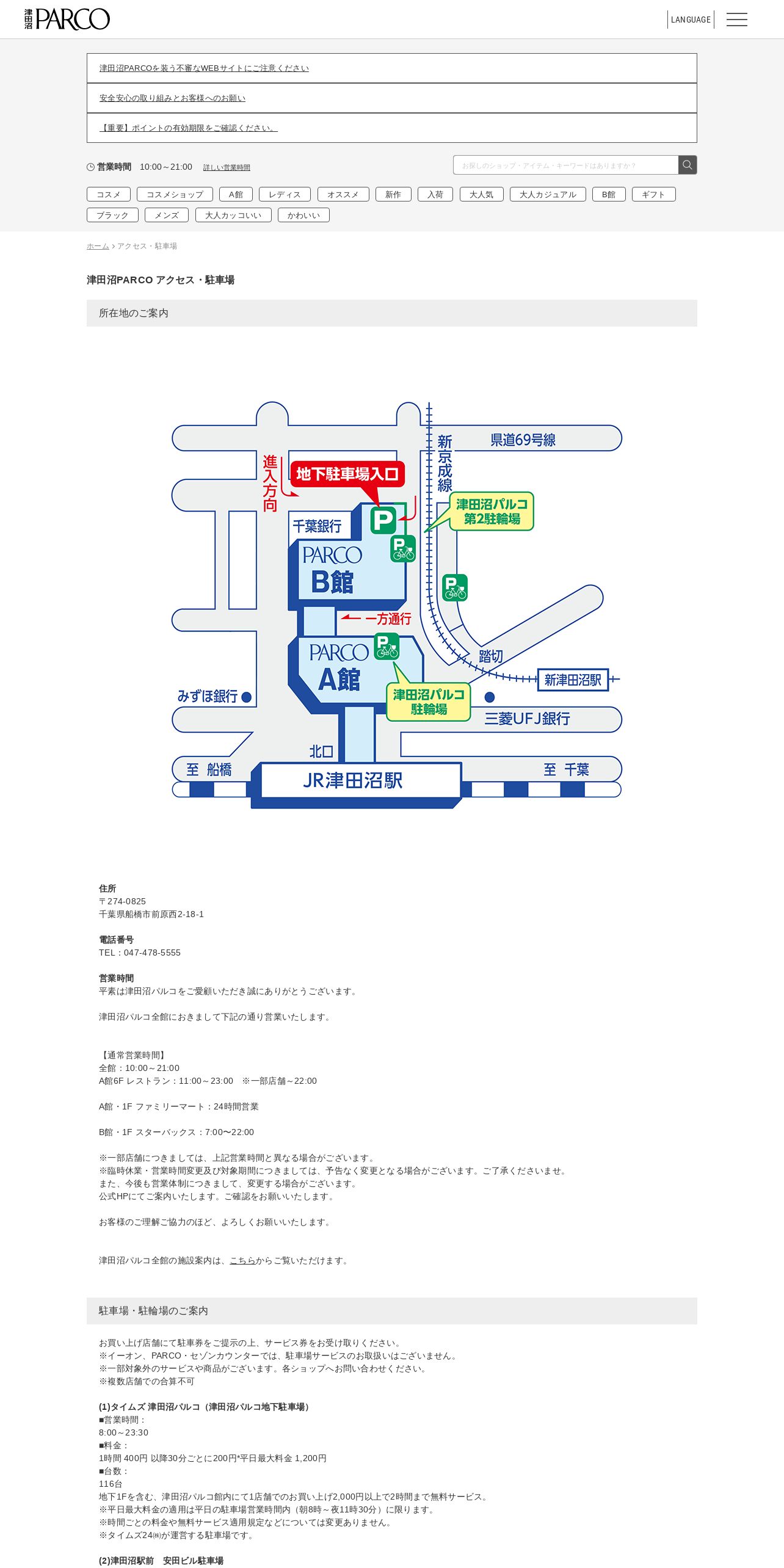 https://tsudanuma.parco.jp:443/info/?gcd=access