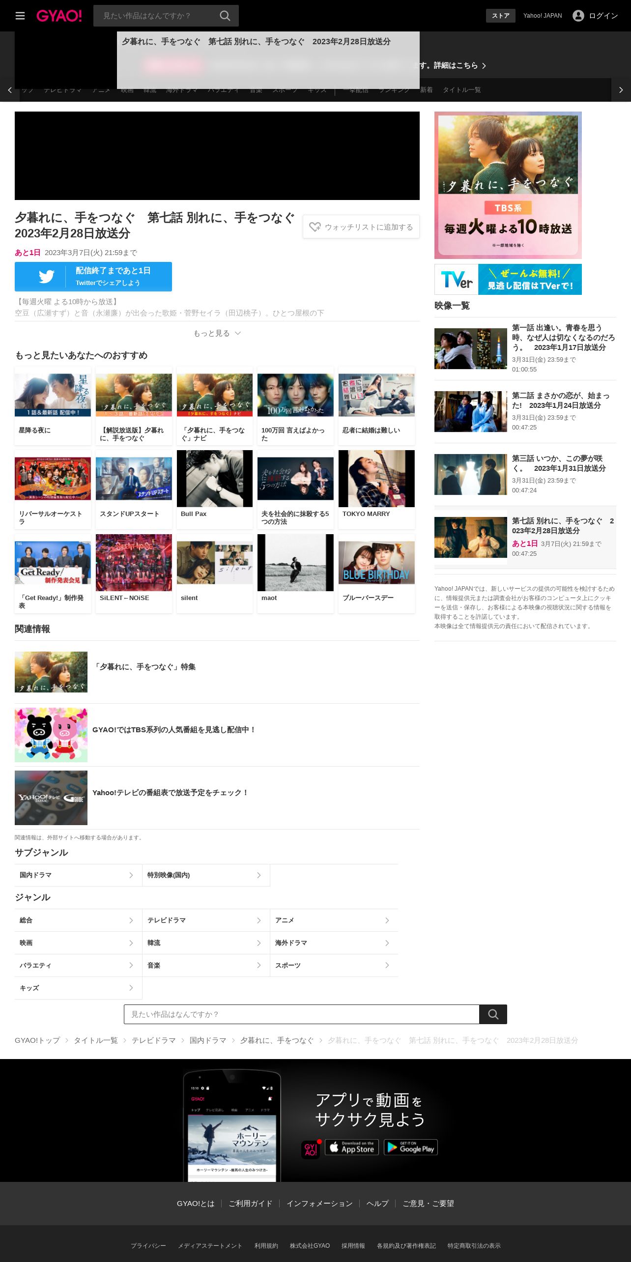 https://gyao.yahoo.co.jp:443/episode/%E5%A4%95%E6%9A%AE%E3%82%8C%E3%81%AB%E3%80%81%E6%89%8B%E3%82%92%E3%81%A4%E3%81%AA%E3%81%90%E3%80%80%E7%AC%AC%E4%B8%83%E8%A9%B1%20%E5%88%A5%E3%82%8C%E3%81%AB%E3%80%81%E6%89%8B%E3%82%92%E3%81%A4%E3%81%AA%E3%81%90%E3%80%802023%E5%B9%B42%E6%9C%8828%E6%97%A5%E6%94%BE%E9%80%81%E5%88%86/63fdc502-9adc-41cd-b10d-8f453bec57d8