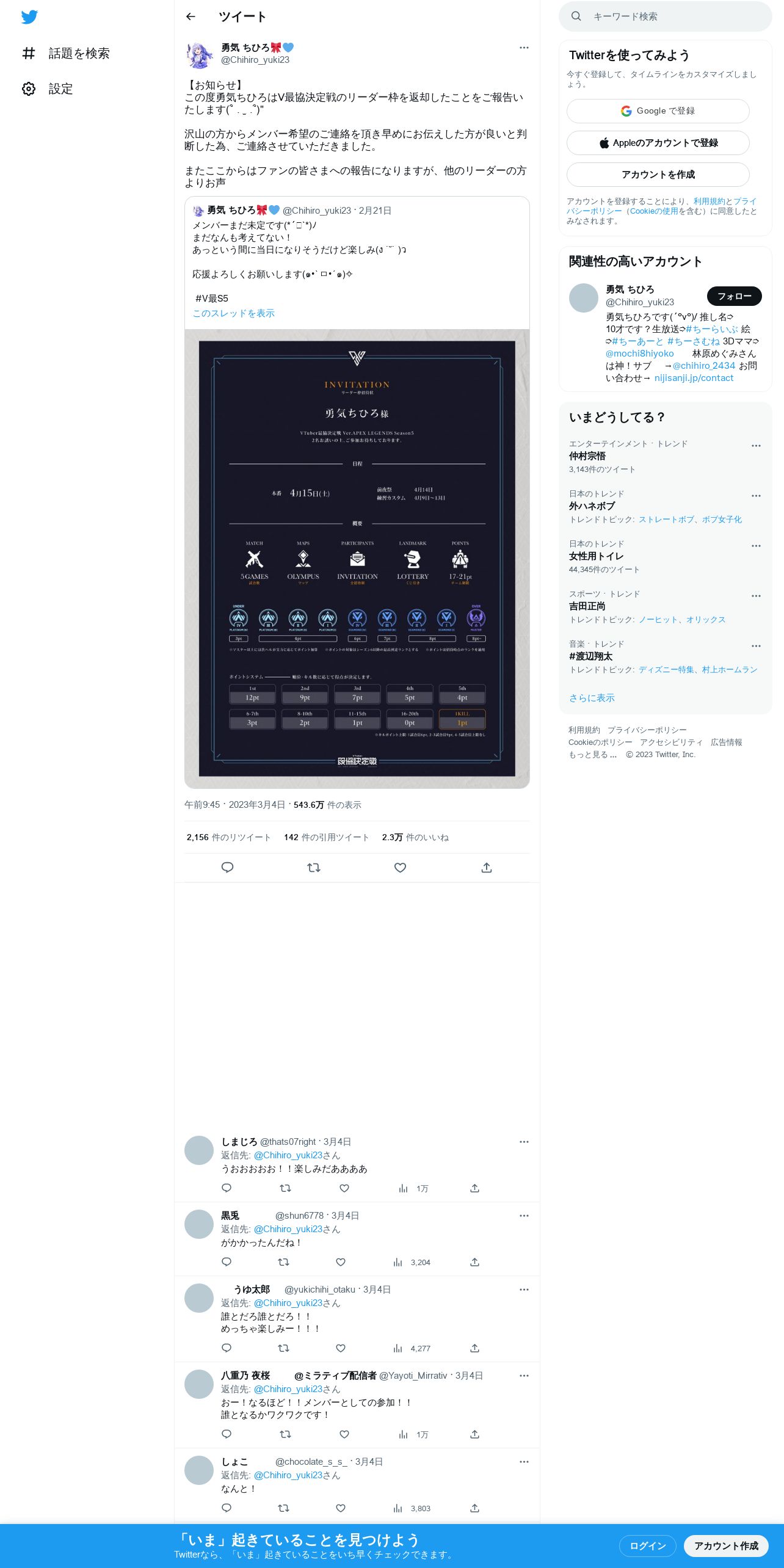 取得元URL: https://twitter.com:443/Chihiro_yuki23/status/1631953917084045312