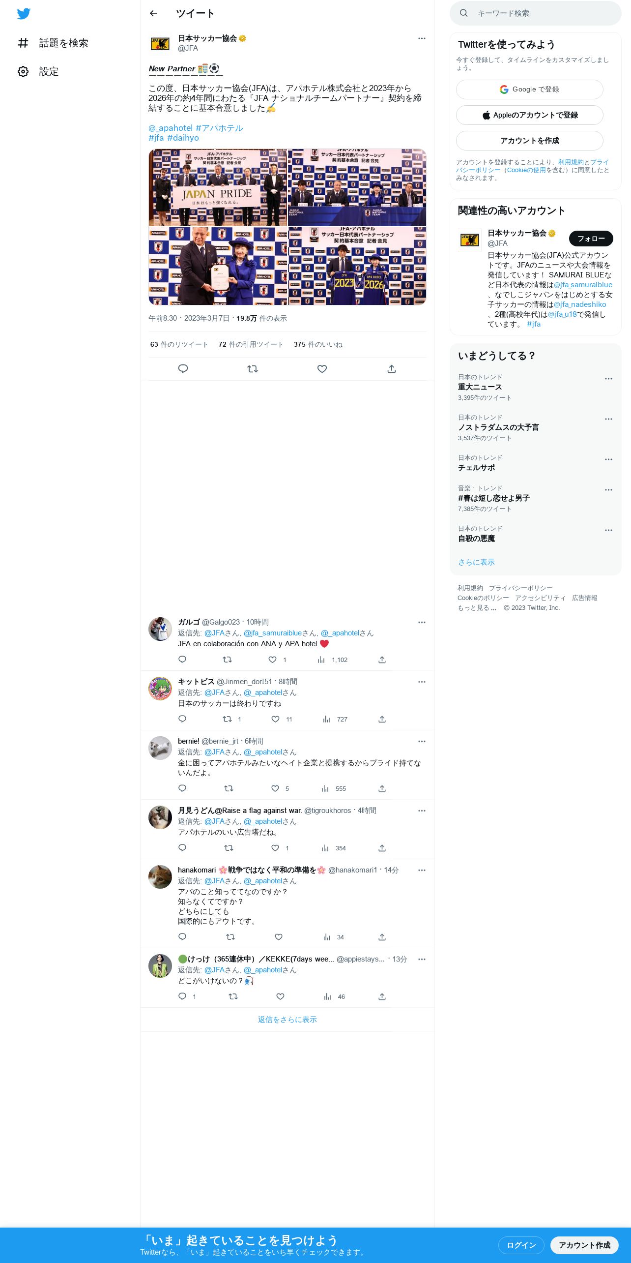 取得元URL: https://twitter.com:443/JFA/status/1633022172468850689