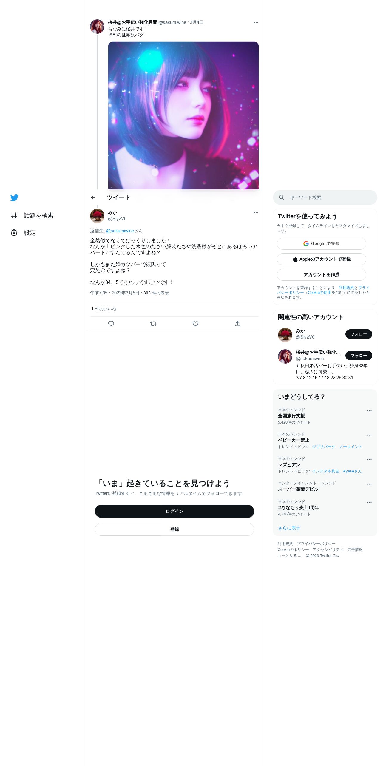 取得元URL: https://twitter.com:443/SlyzV0/status/1632276227942907904?cxt=HHwWgIDQ3ZilgactAAAA