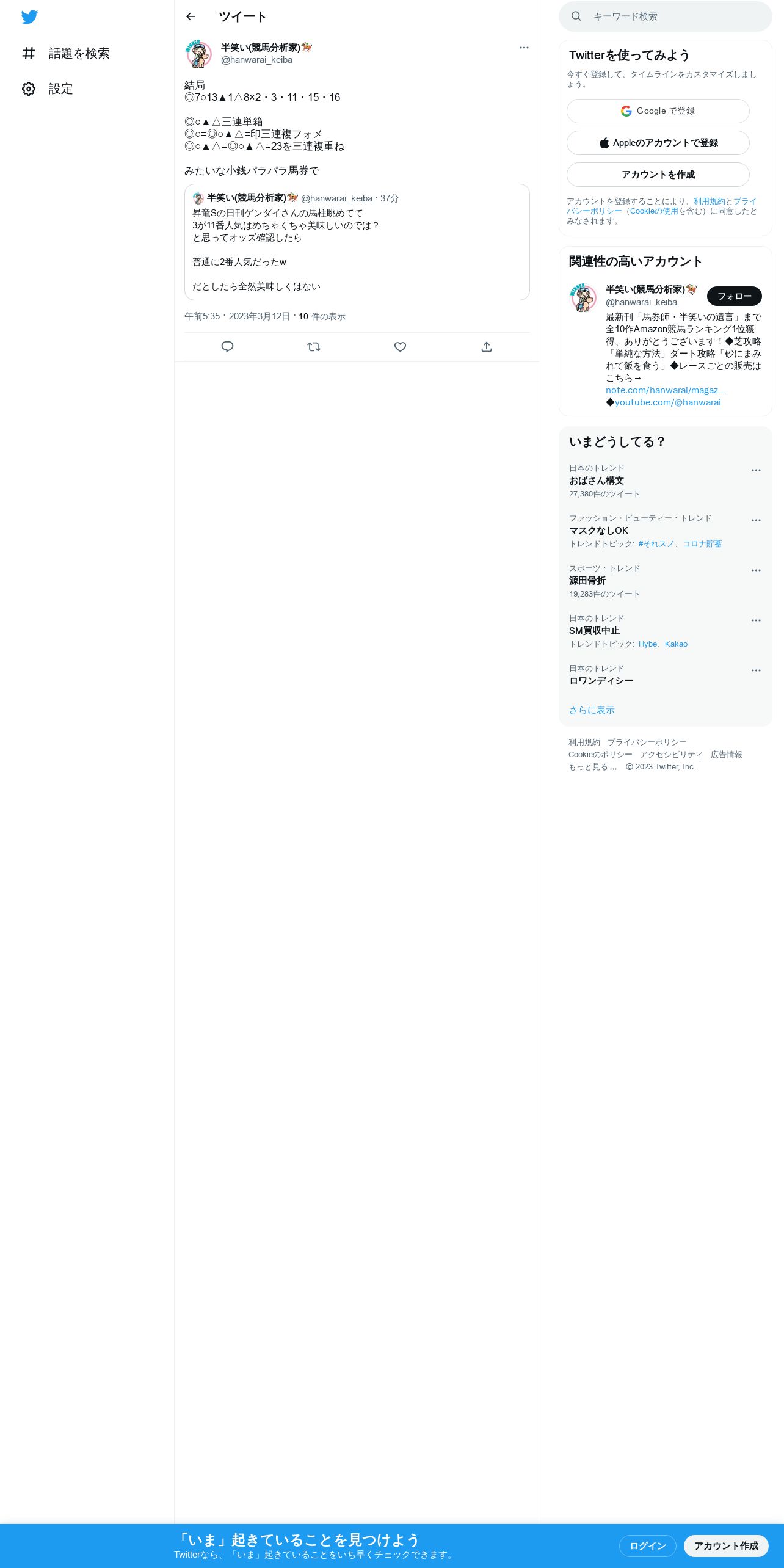 https://twitter.com:443/hanwarai_keiba/status/1634790074805268481