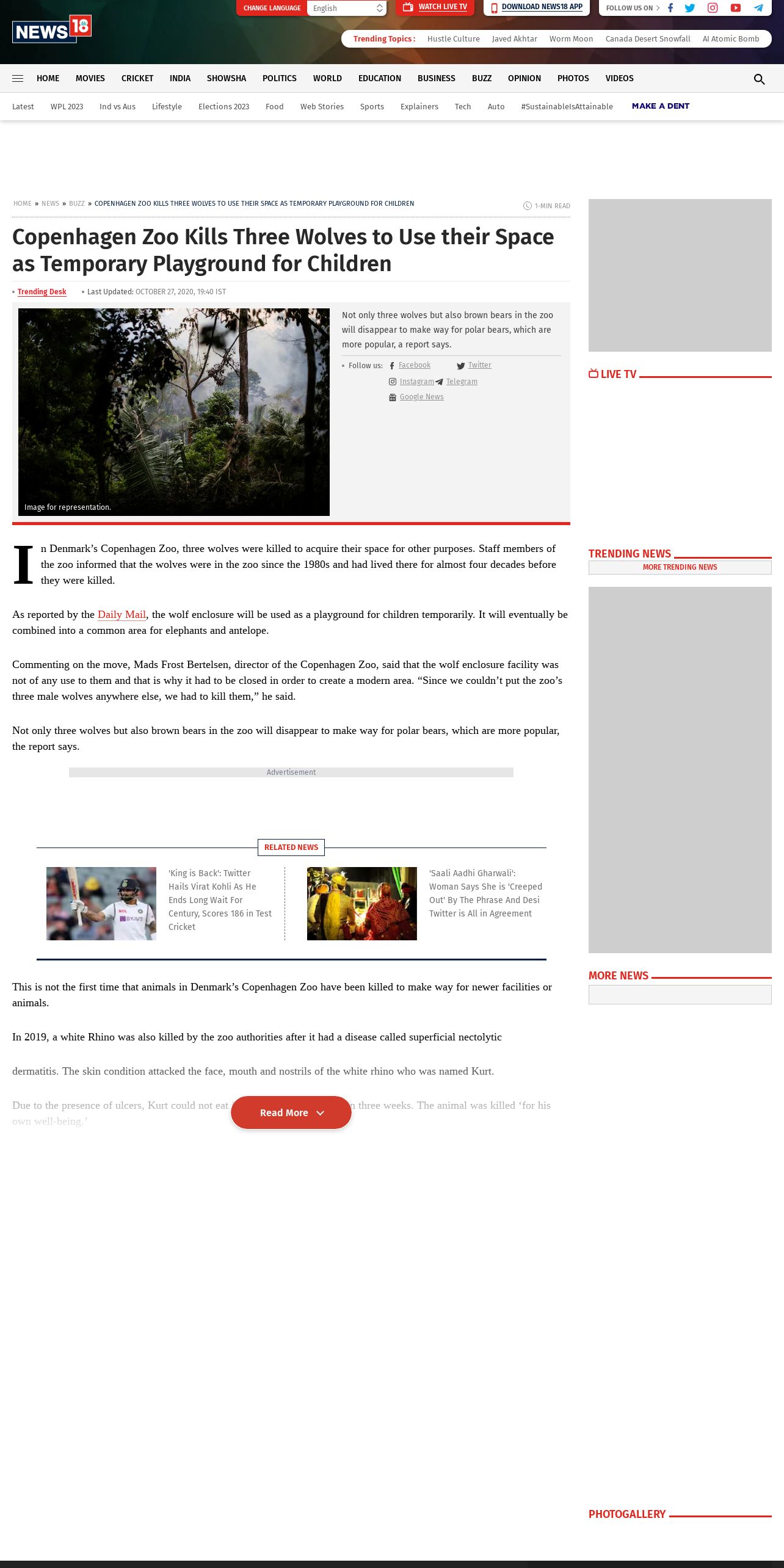 https://www.news18.com:443/news/buzz/copenhagen-zoo-kills-three-wolves-to-use-their-space-as-temporary-playground-for-children-3013331.html