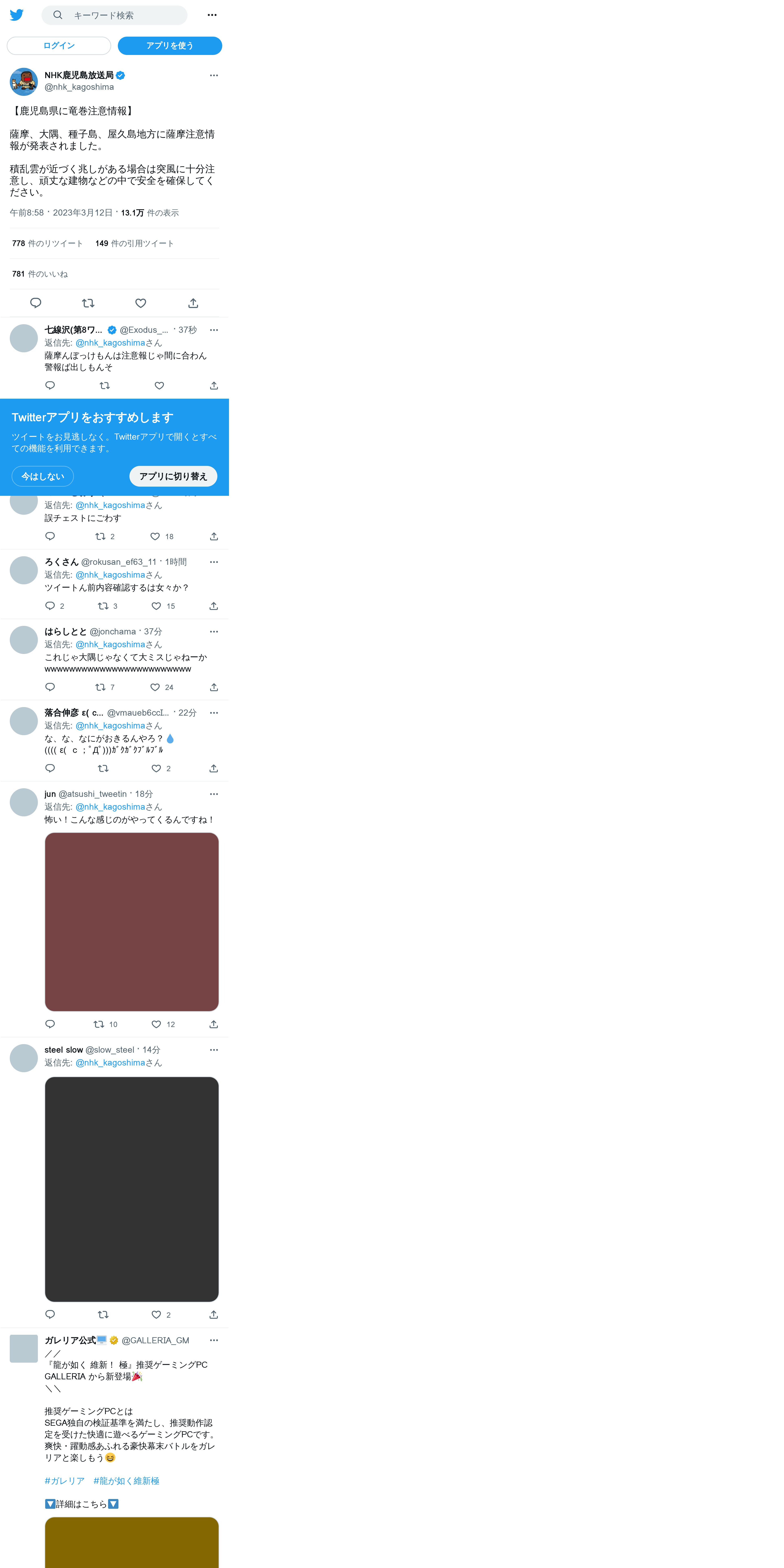 取得元URL: https://twitter.com:443/nhk_kagoshima/status/1634841232131096577