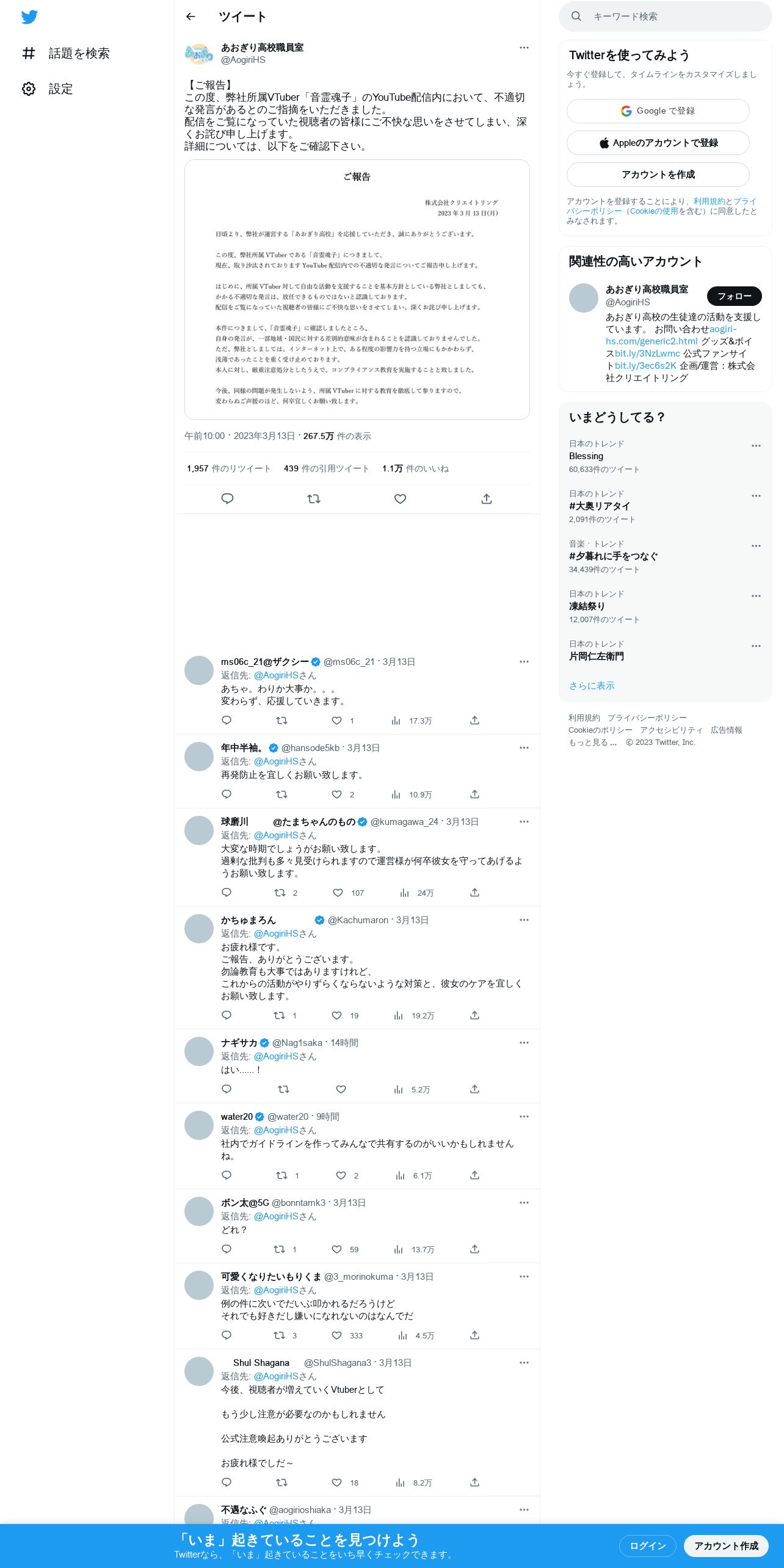 取得元URL: https://twitter.com:443/AogiriHS/status/1635219159494840320