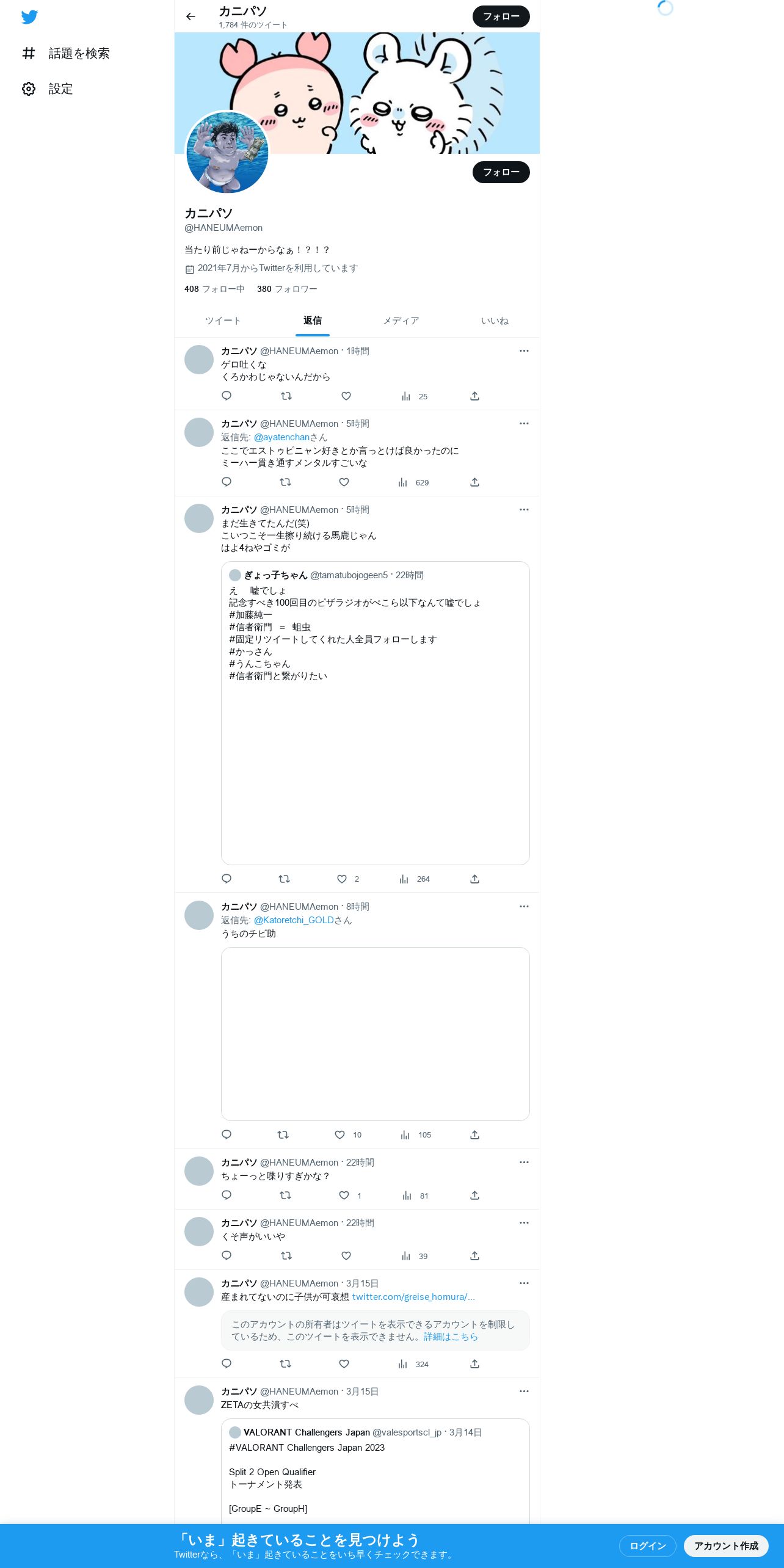 取得元URL: https://twitter.com:443/HANEUMAemon/with_replies