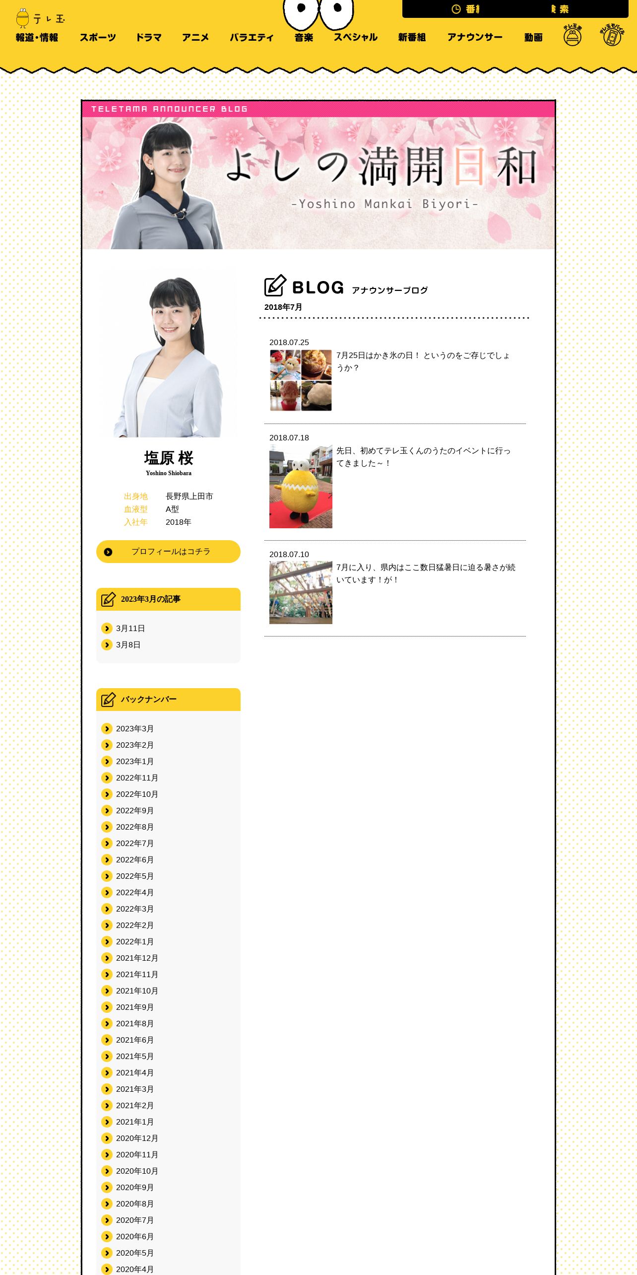 https://www.teletama.jp:443/announcer/shiobara/blog/201807.html