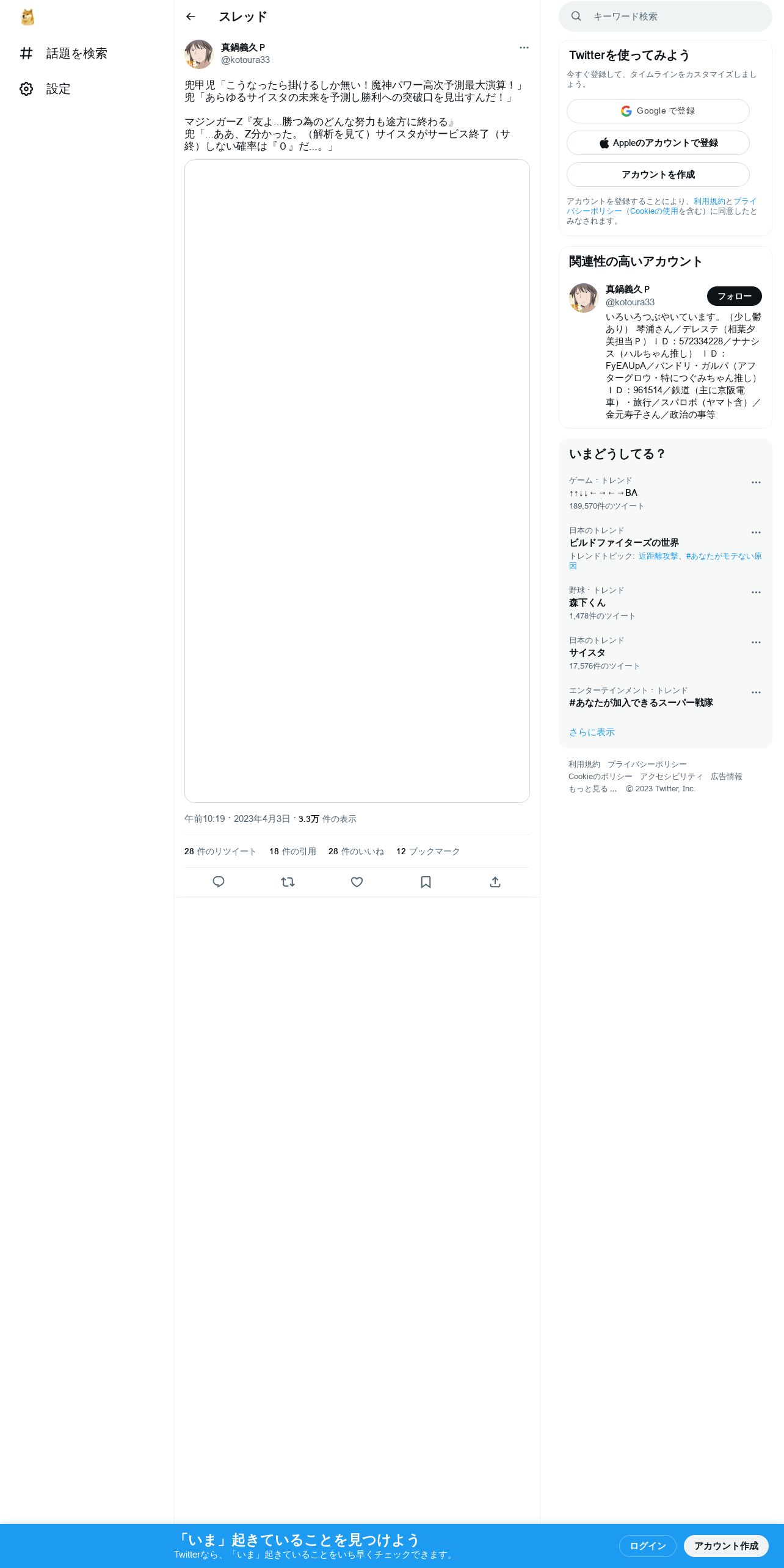 取得元URL: https://twitter.com:443/kotoura33/status/1642834085507923970