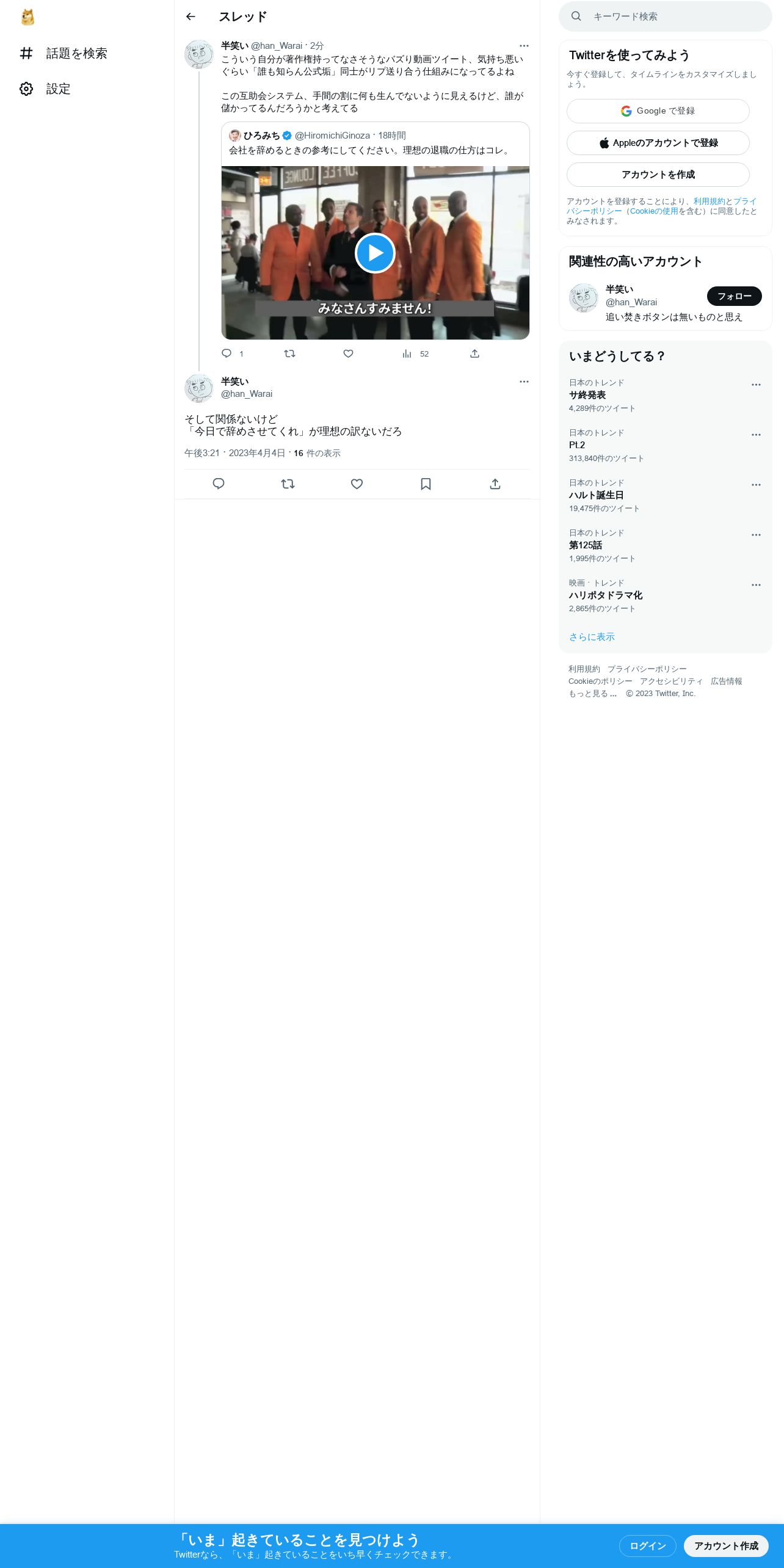 取得元URL: https://twitter.com:443/han_Warai/status/1643272617019973632