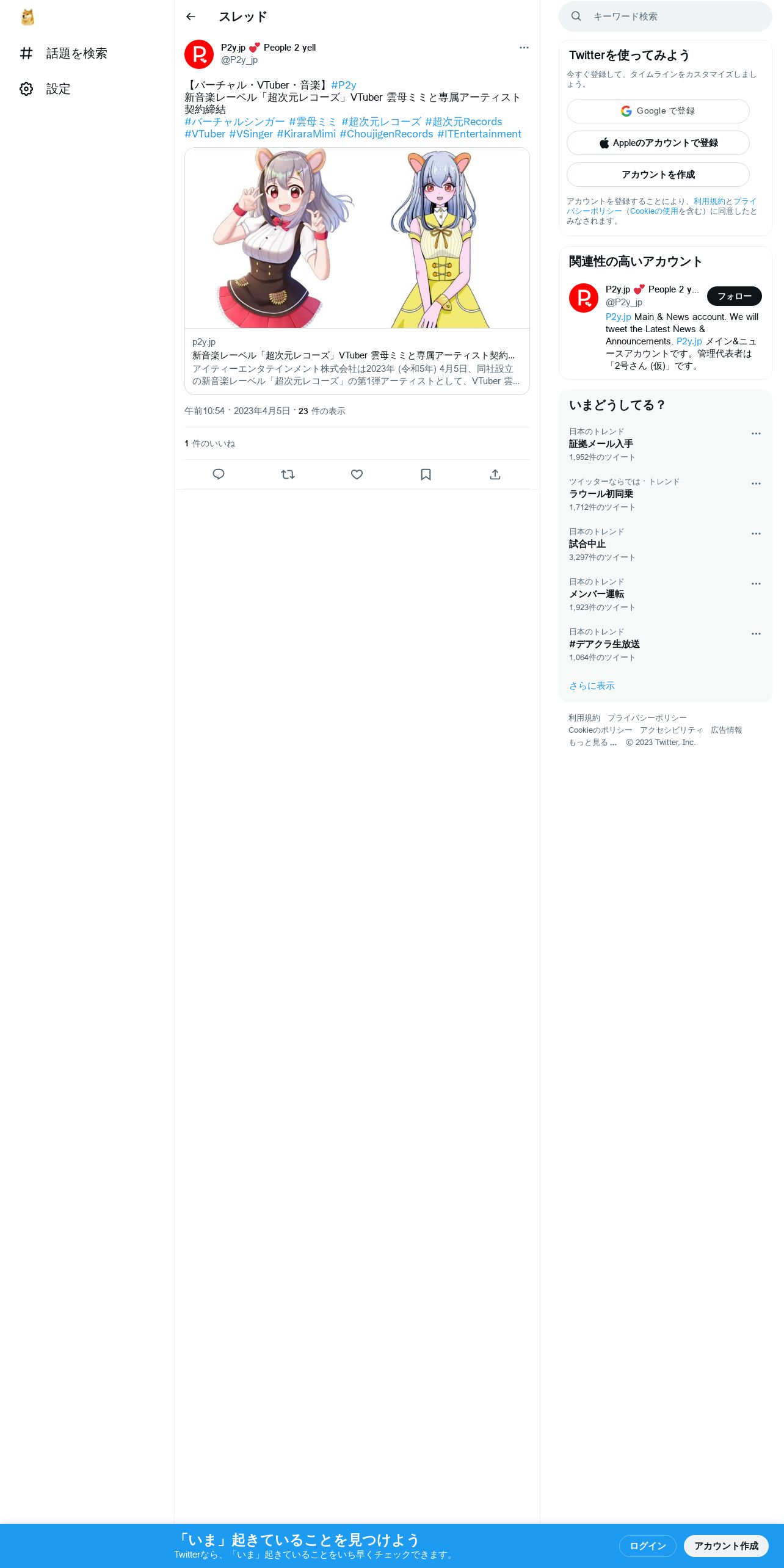 取得元URL: https://twitter.com:443/P2y_jp/status/1643567675317309440