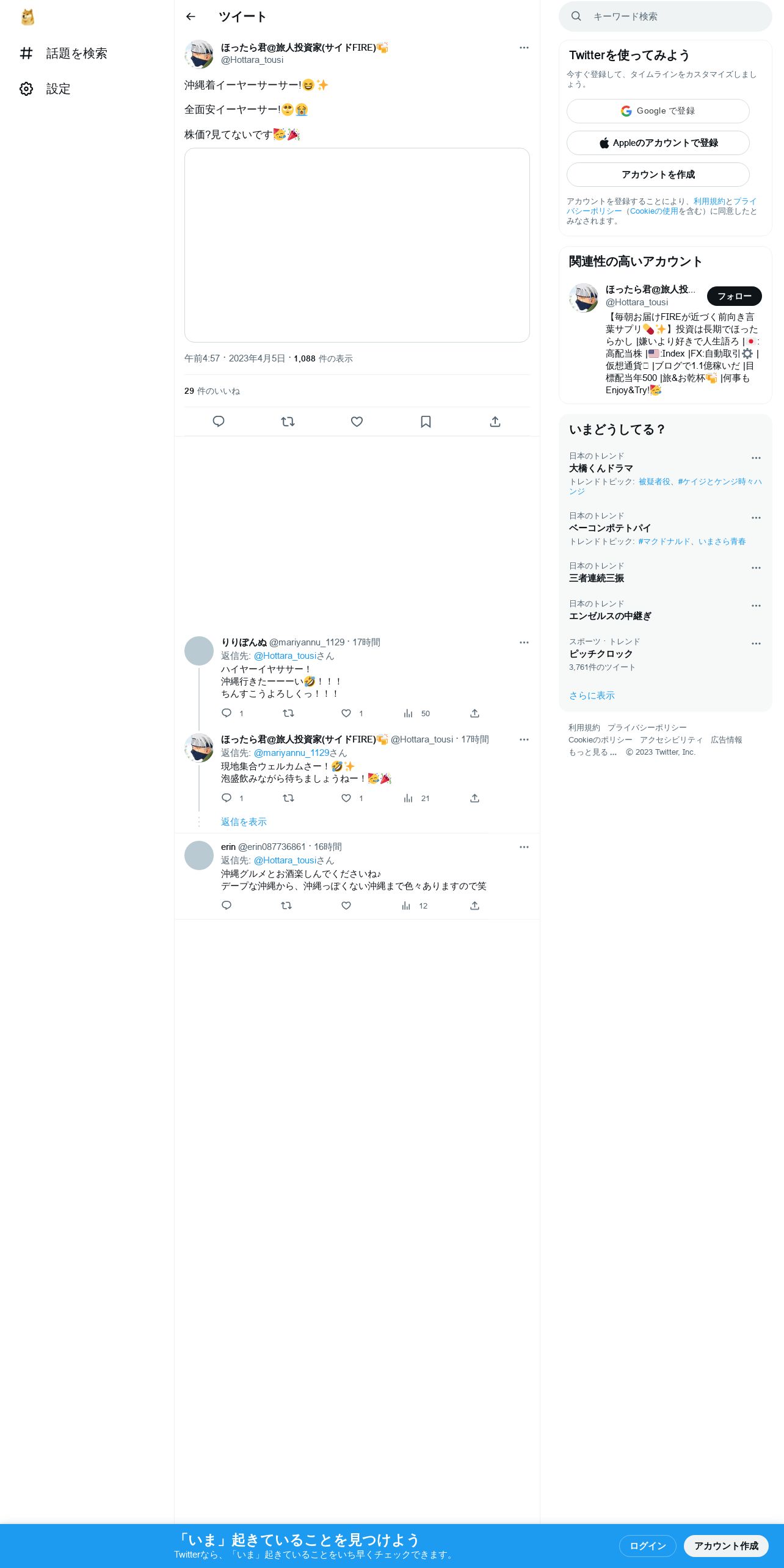 取得元URL: https://twitter.com:443/Hottara_tousi/status/1643477842142064642
