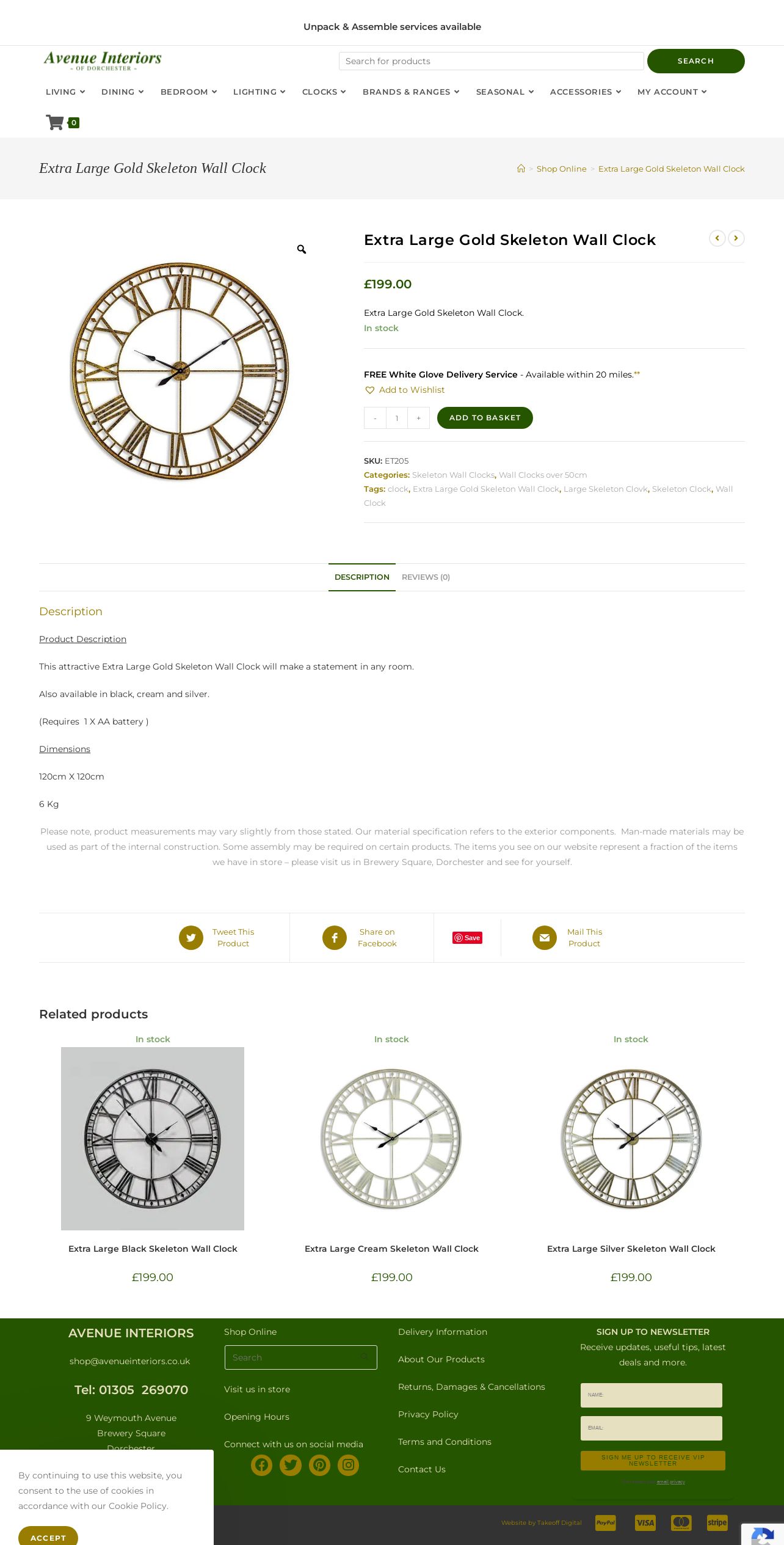 https://avenueinteriors.co.uk:443/shop/extra-large-gold-skeleton-wall-clock/