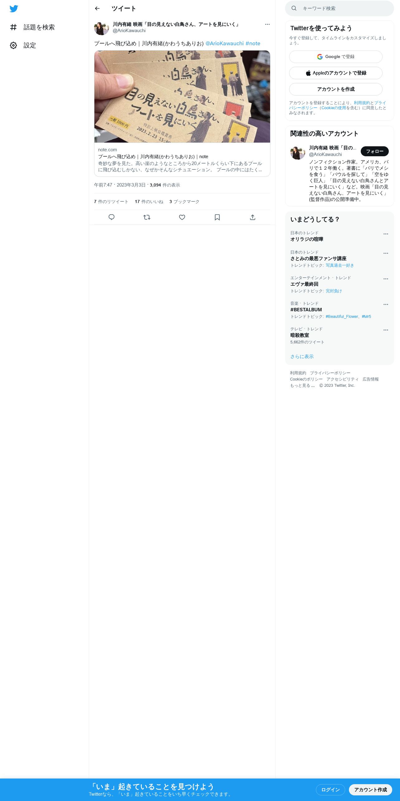 https://twitter.com:443/ArioKawauchi/status/1631562009048403970