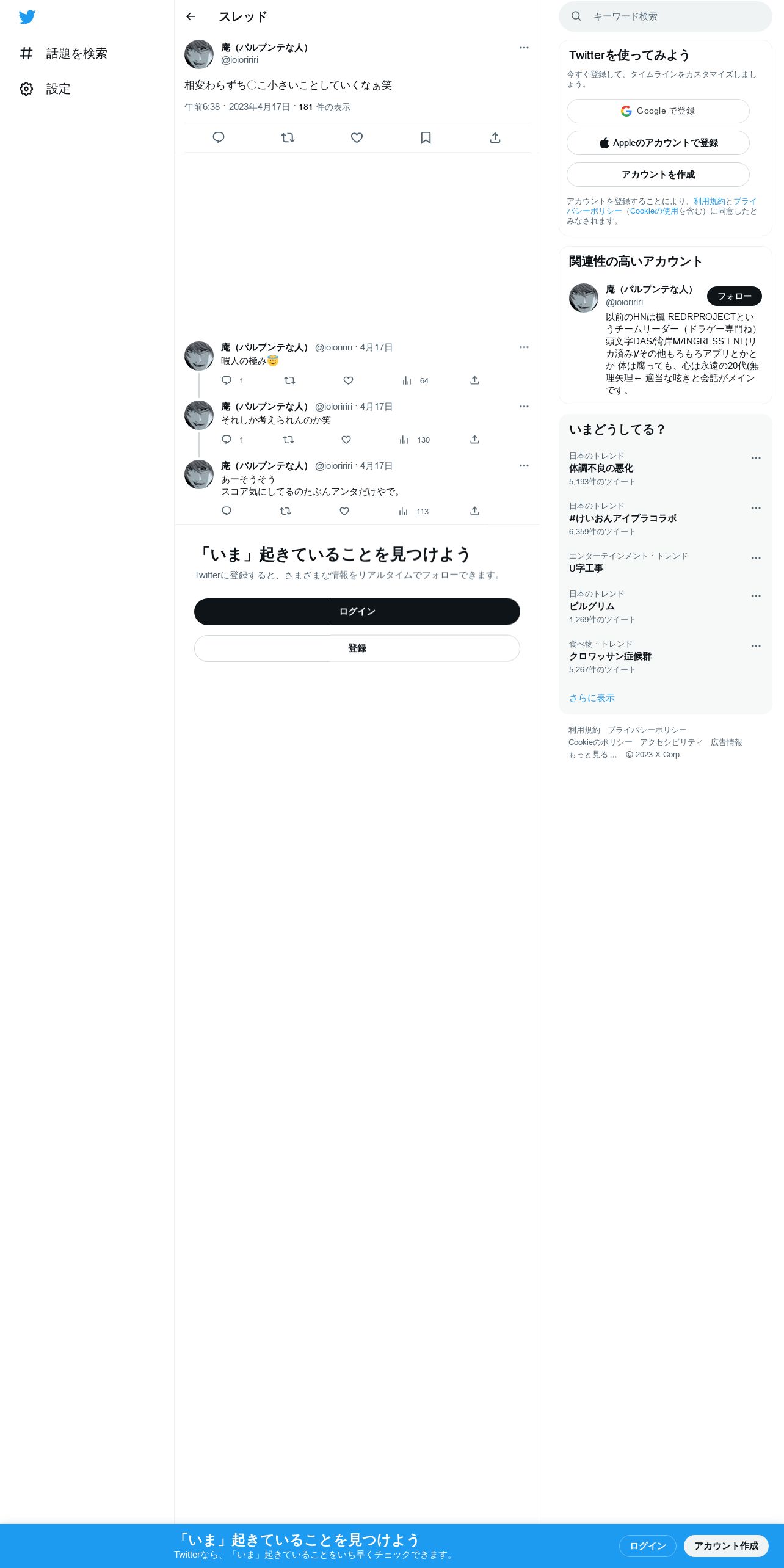 取得元URL: https://twitter.com:443/ioioririri/status/1647851963365883905?cxt=HHwWgoDU7aiorN4tAAAA