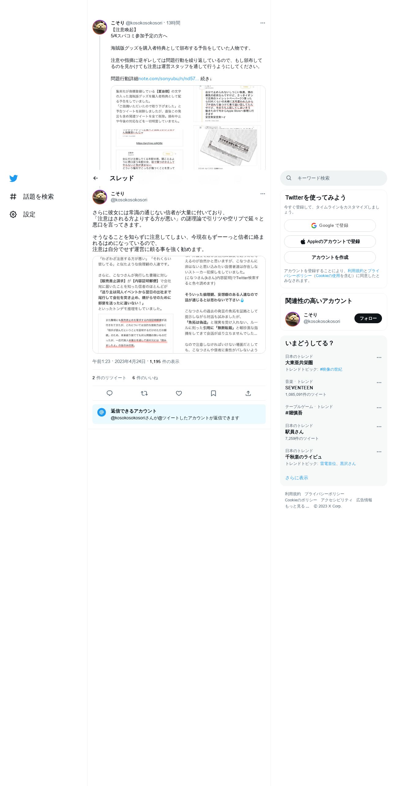 取得元URL: https://twitter.com:443/kosokosokosori/status/1650309476996775939