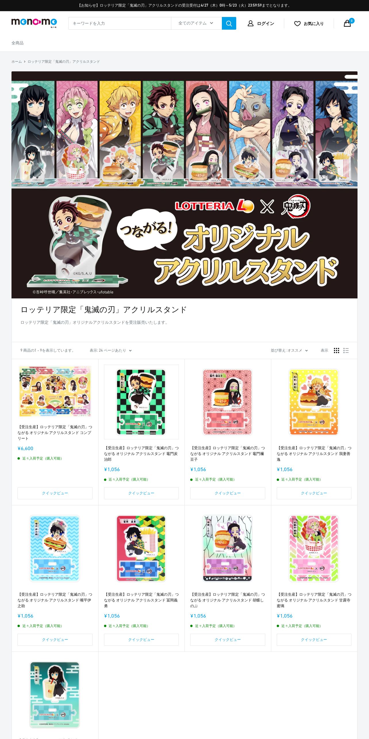 取得元URL: https://mono-mo.com:443/collections/lotteria-kimetsunoyaiba