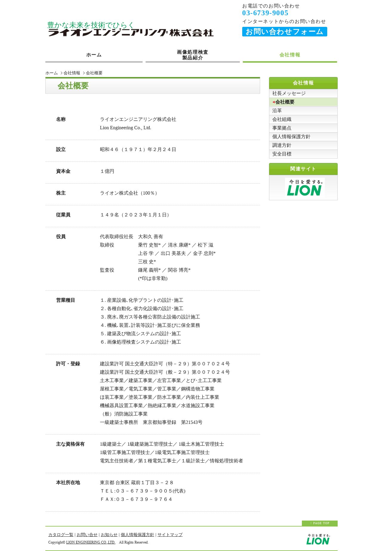 https://www.lion-eng.co.jp:443/company/outline.htm