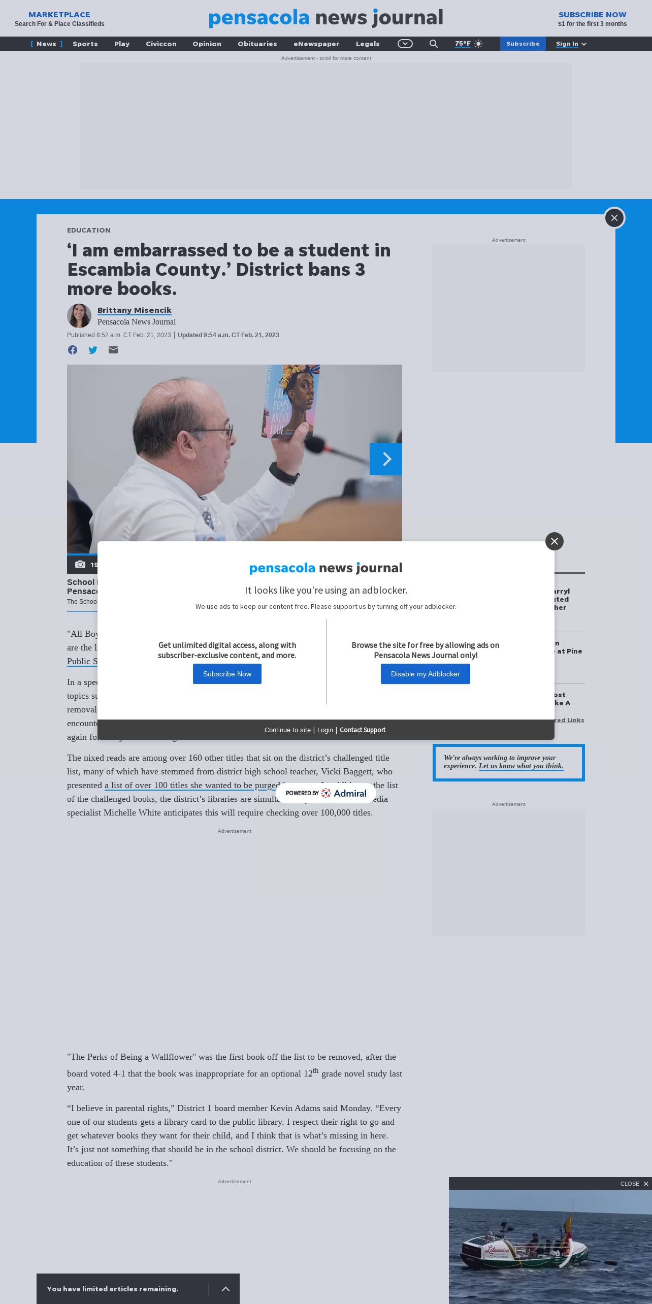 https://www.pnj.com:443/story/news/education/2023/02/21/escambia-county-florida-school-board-bans-3-books-with-lgbt-references/69925496007/