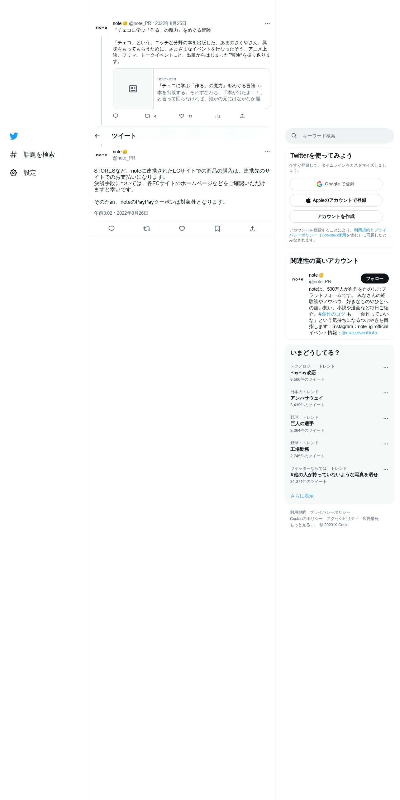 取得元URL: https://twitter.com:443/note_PR/status/1562998851862405123