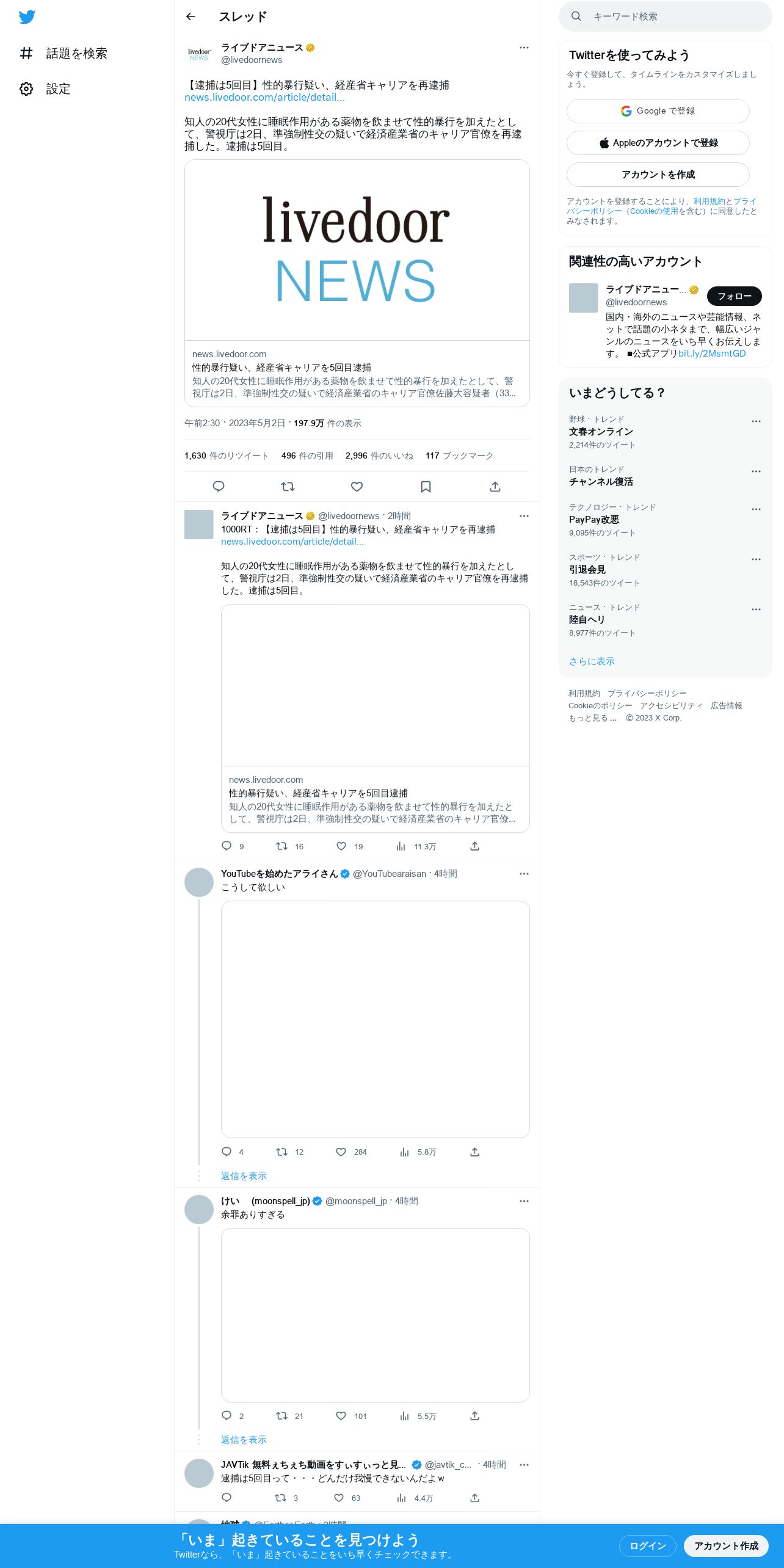 https://twitter.com:443/livedoornews/status/1653225385260351489