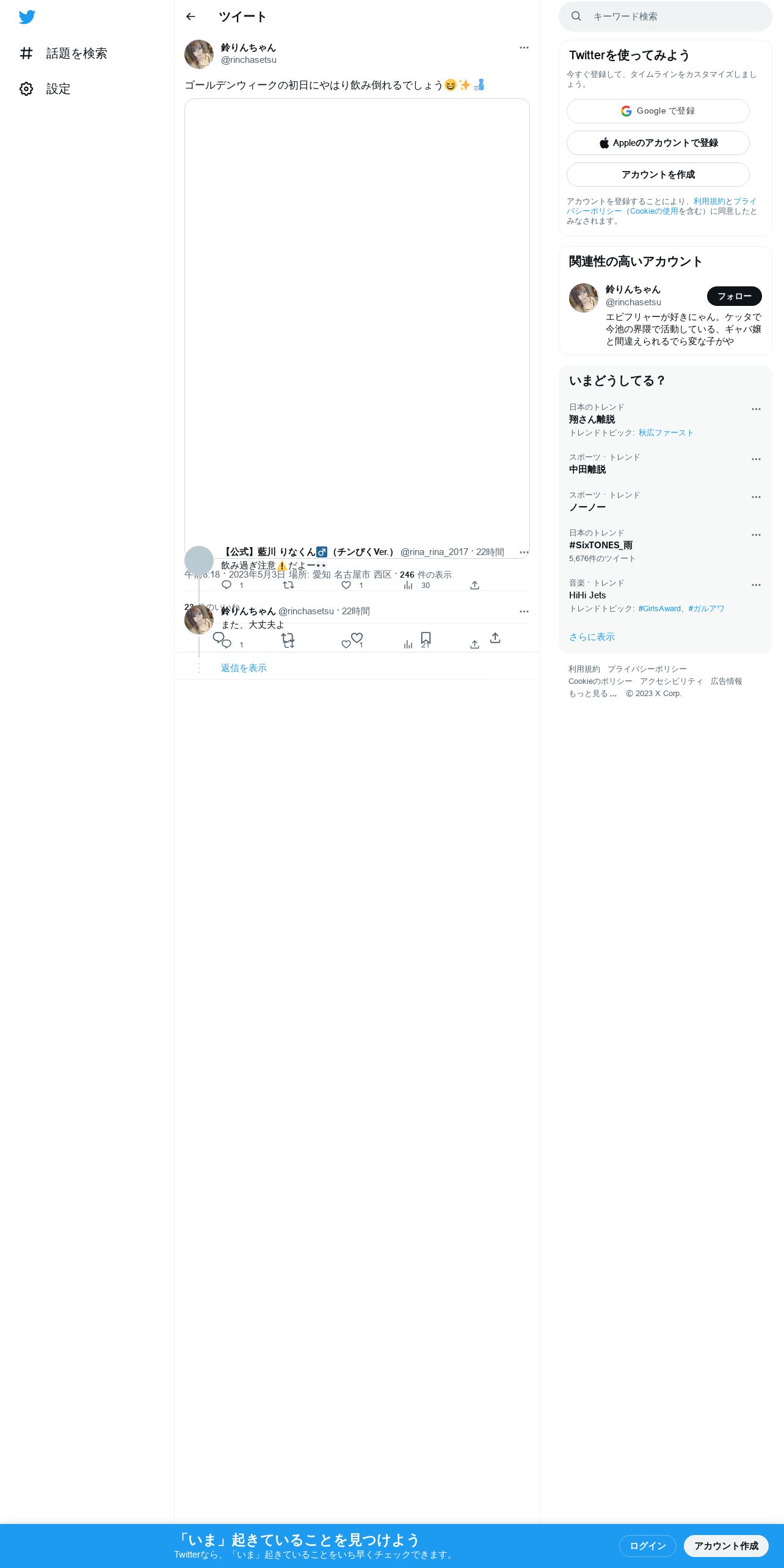 取得元URL: https://twitter.com:443/rinchasetsu/status/1653675418778750976
