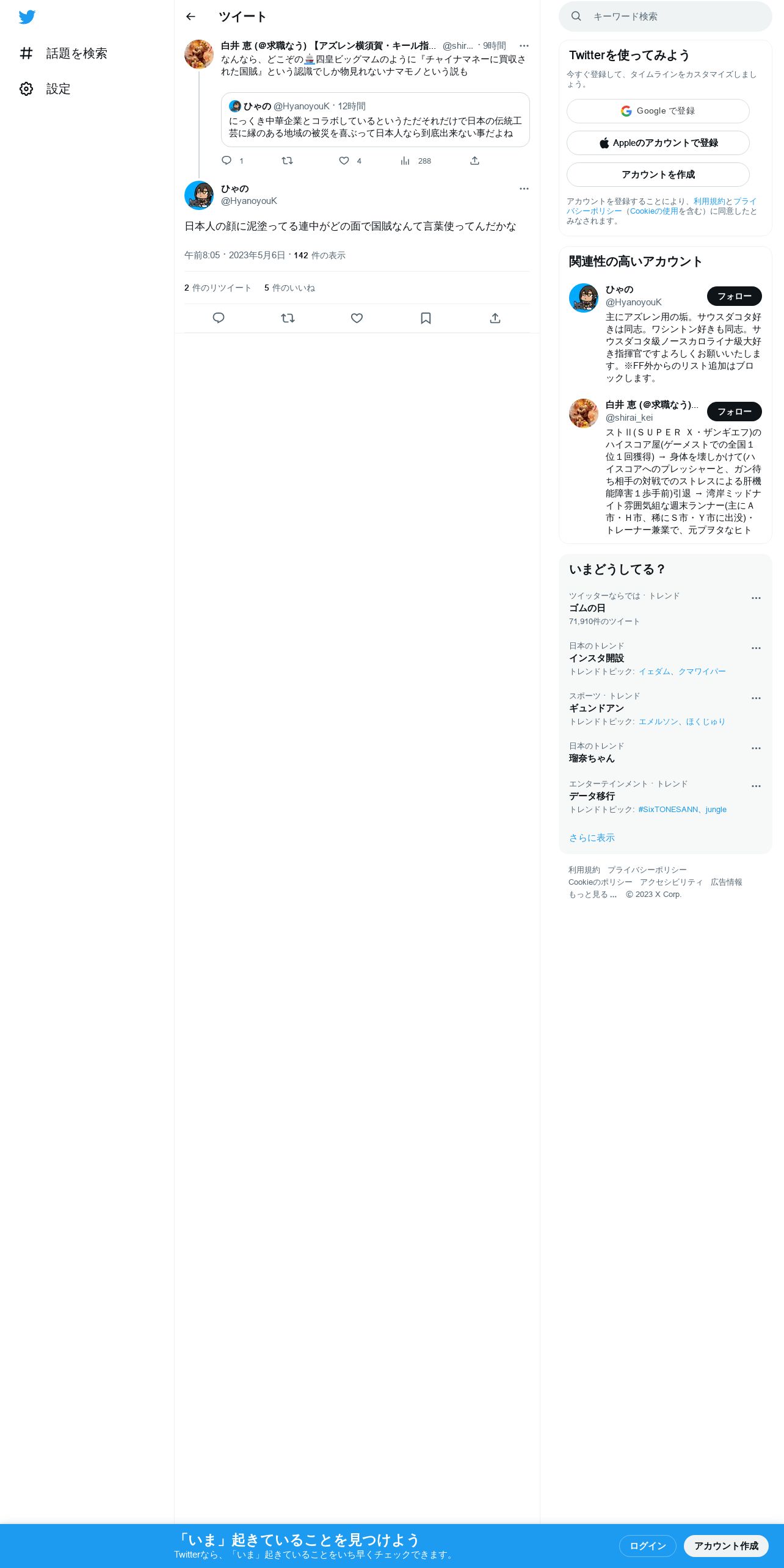 取得元URL: https://twitter.com:443/HyanoyouK/status/1654759304325664768