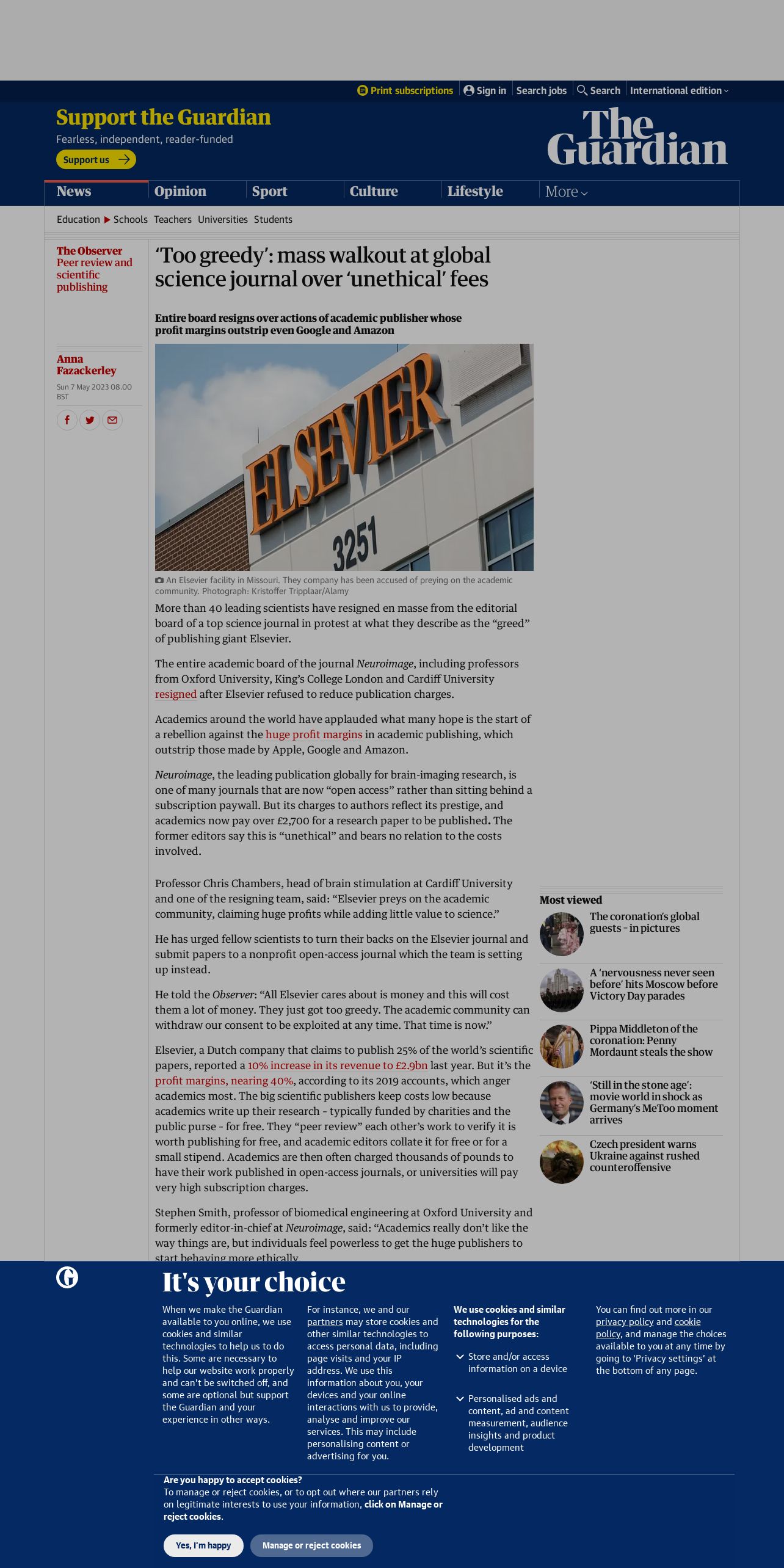 取得元URL: https://www.theguardian.com:443/science/2023/may/07/too-greedy-mass-walkout-at-global-science-journal-over-unethical-fees