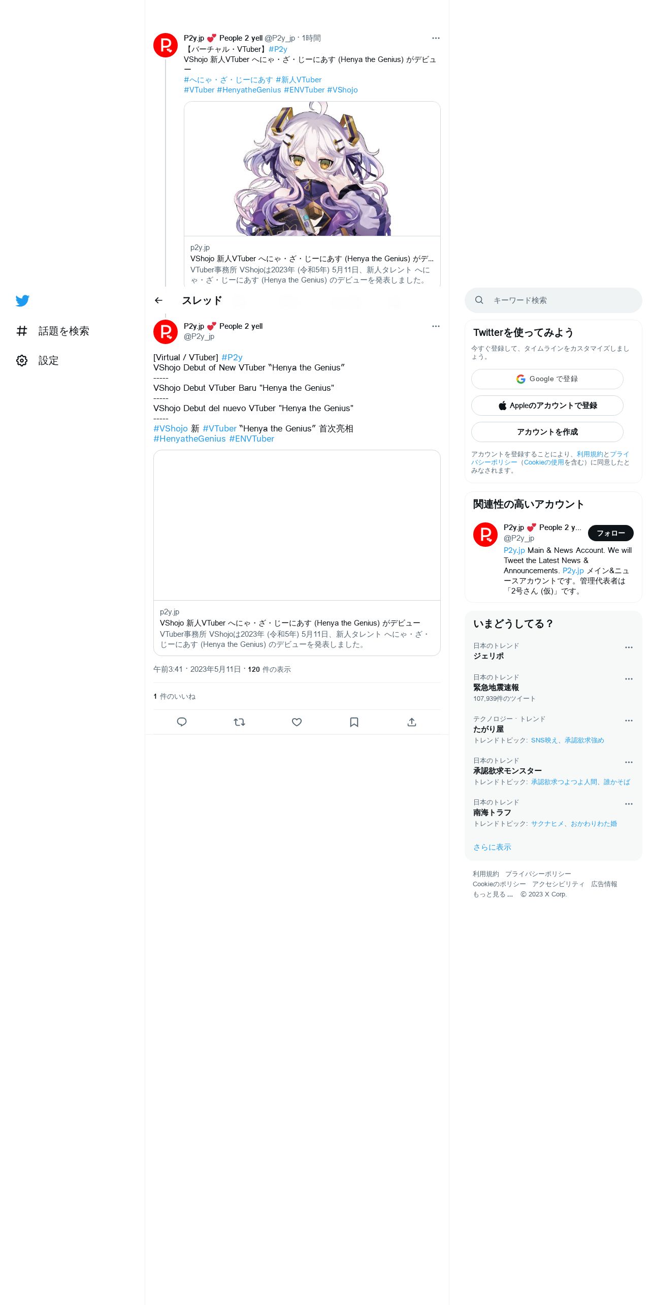 https://twitter.com:443/P2y_jp/status/1656504894130622464