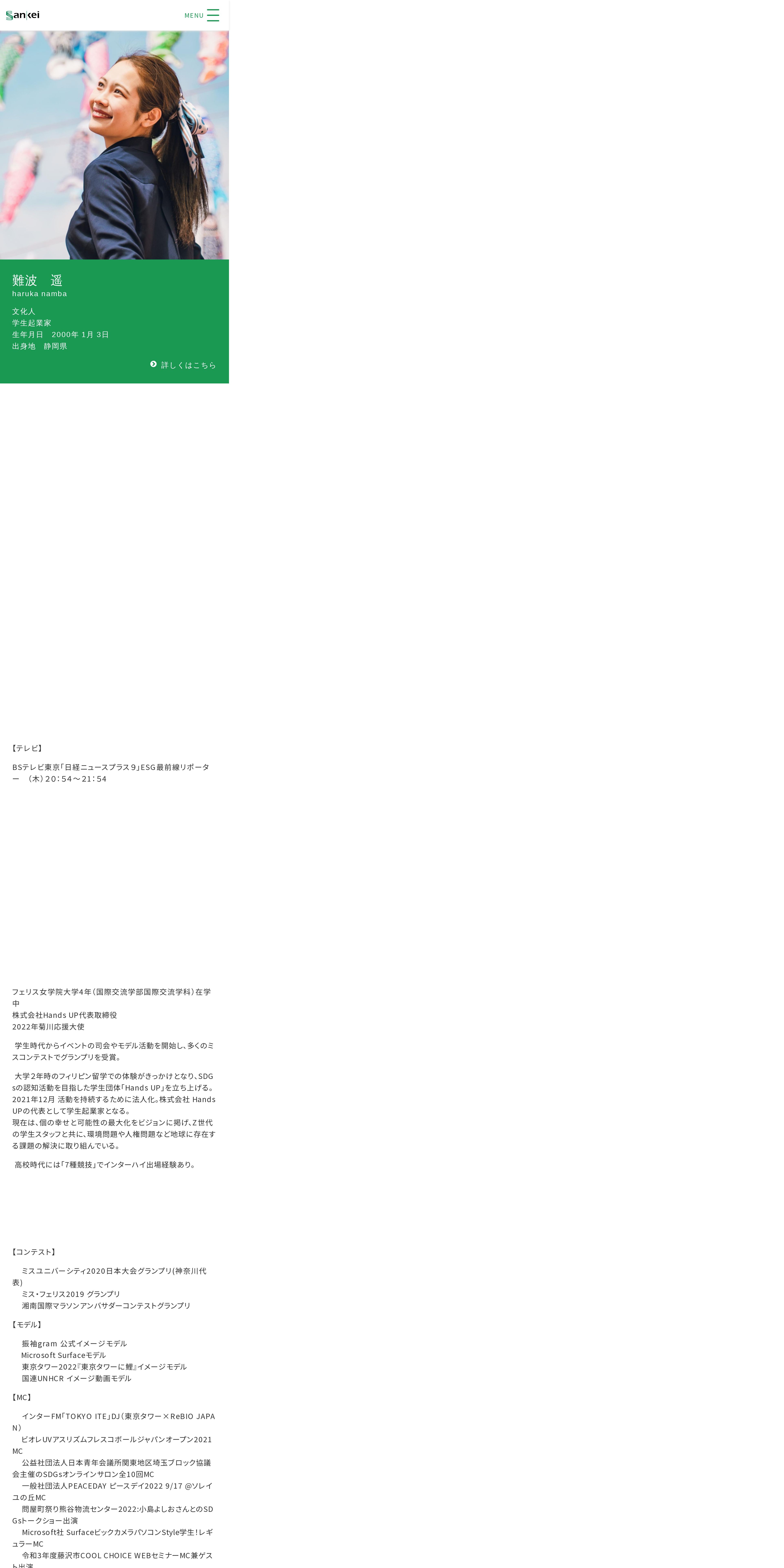 https://www.sankeipro.co.jp:443/talent/profile/haruka-namba/