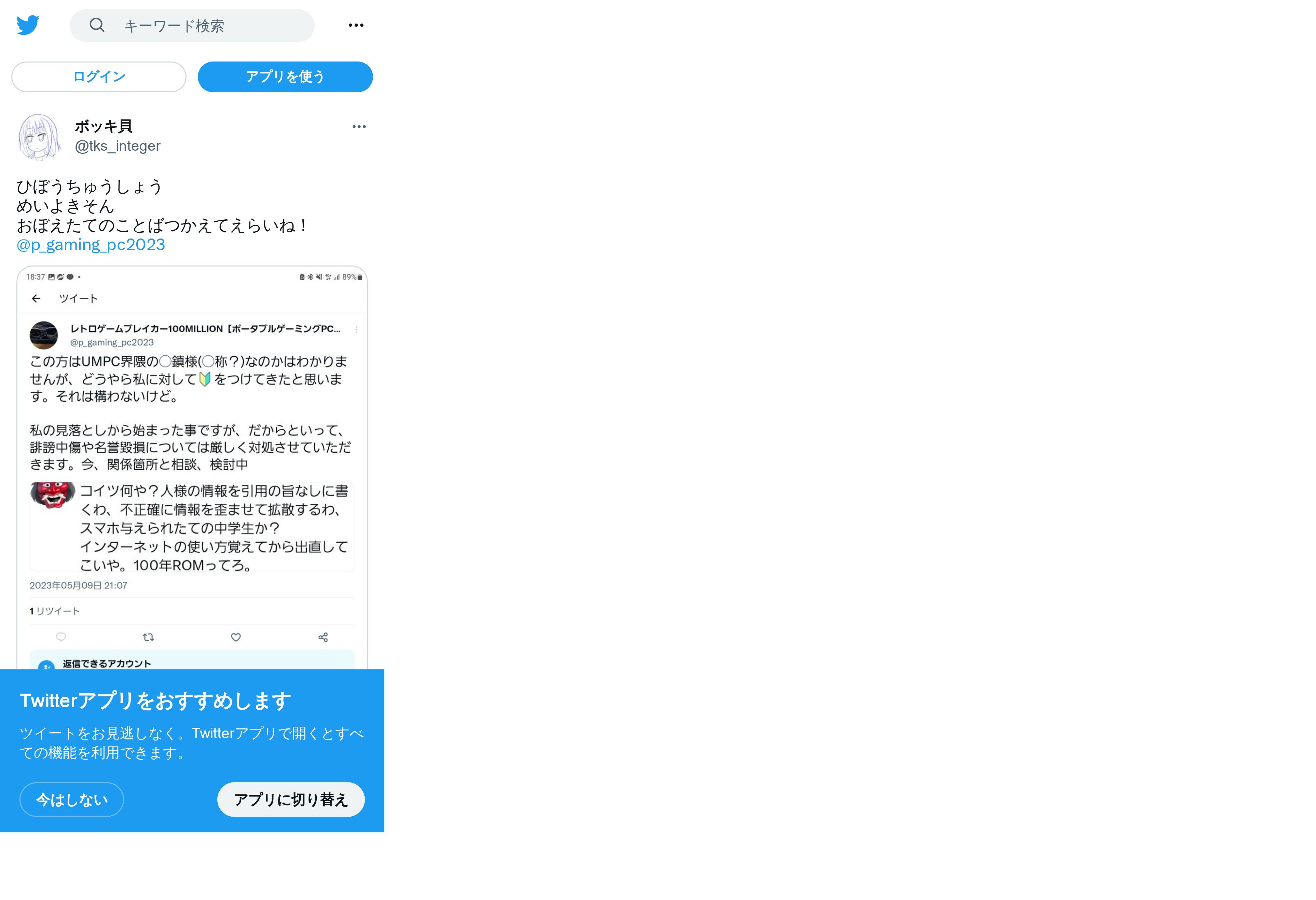 https://twitter.com:443/tks_integer/status/1657682310647664640
