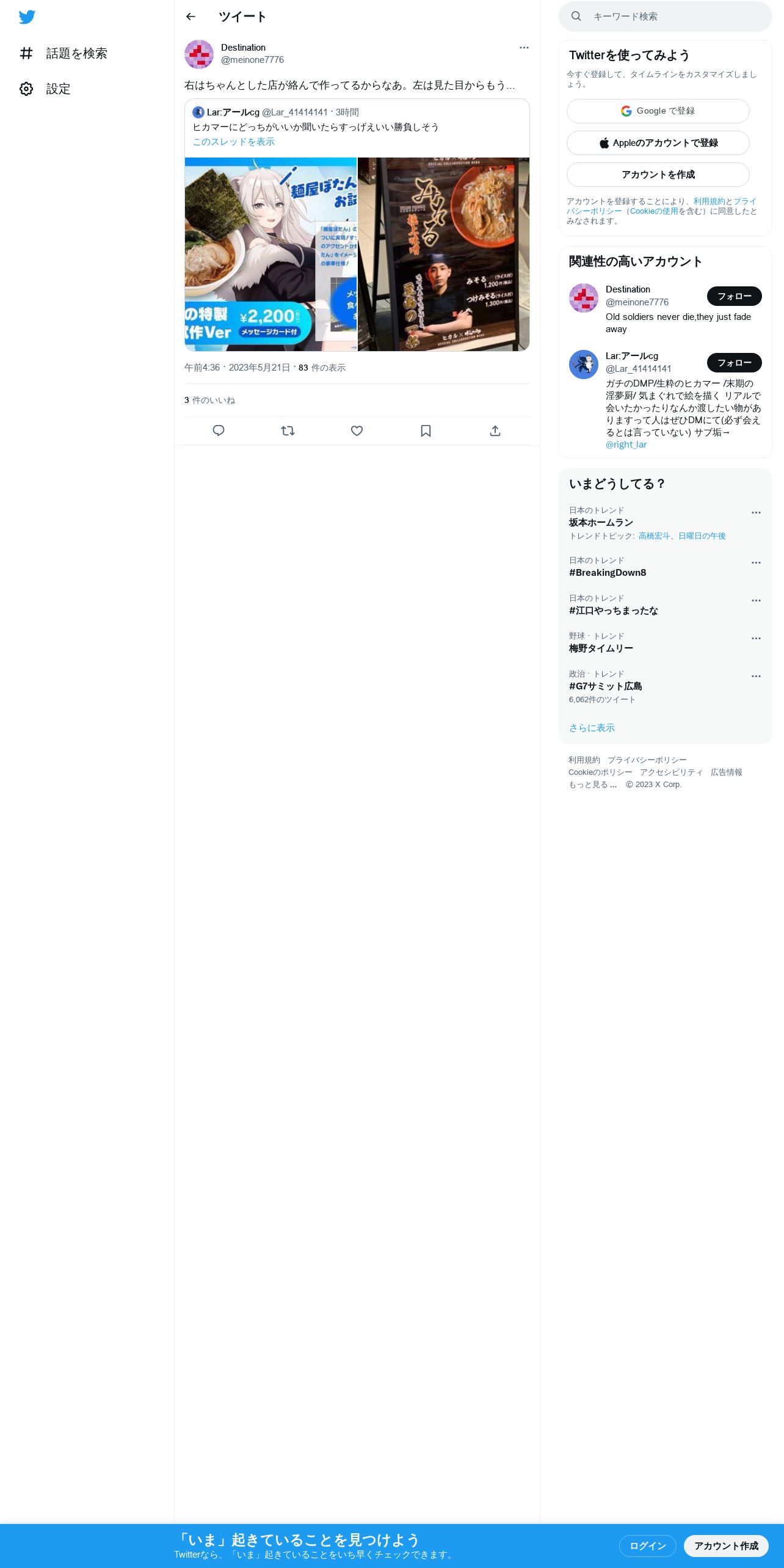 取得元URL: https://twitter.com:443/meinone7776/status/1660142507416768514