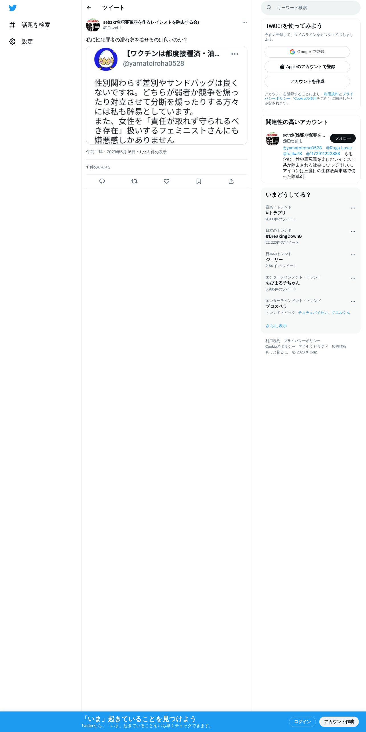 取得元URL: https://twitter.com:443/Enzai_L/status/1658279731916308481