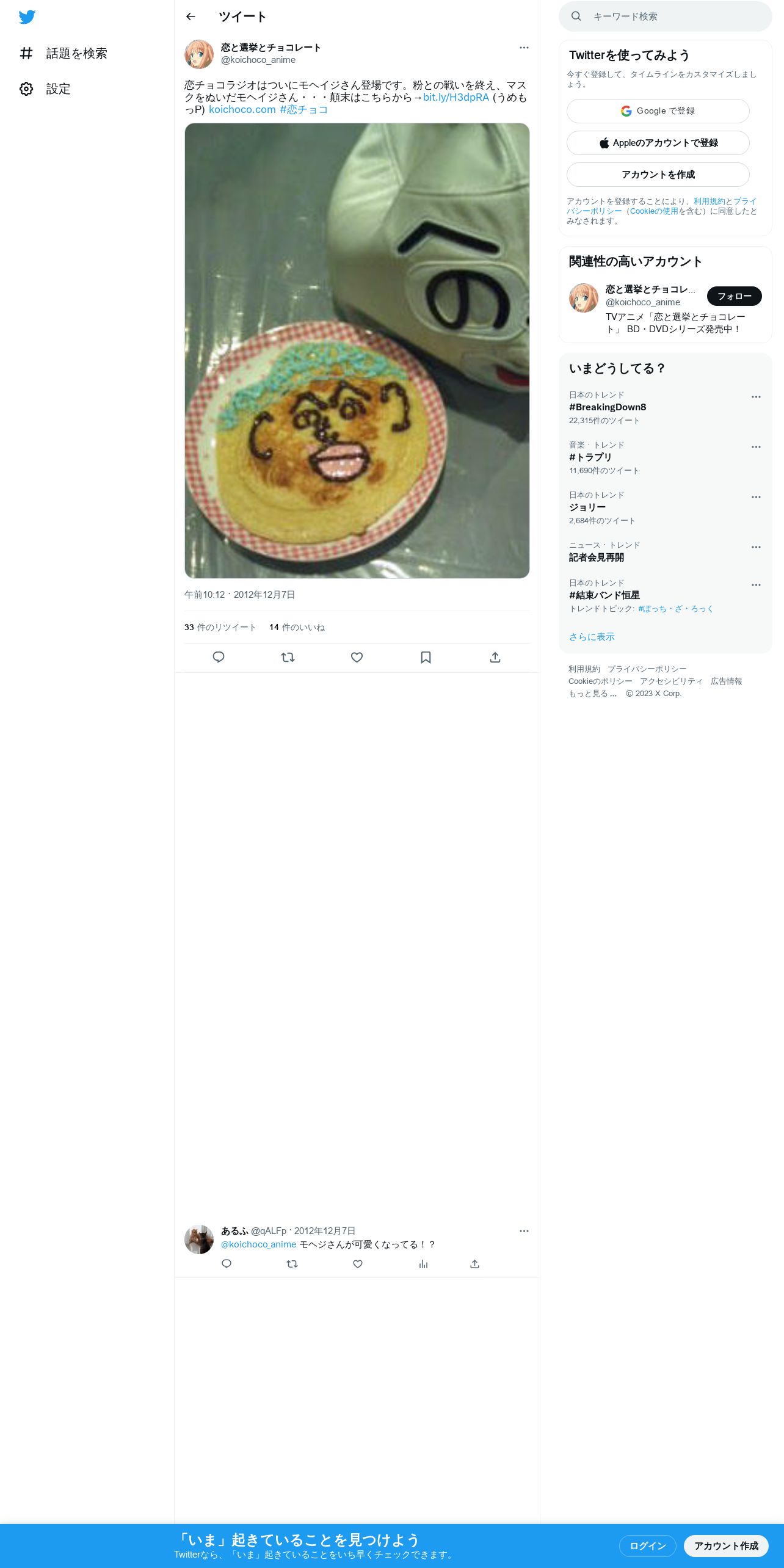取得元URL: https://twitter.com:443/koichoco_anime/status/276992521807208448