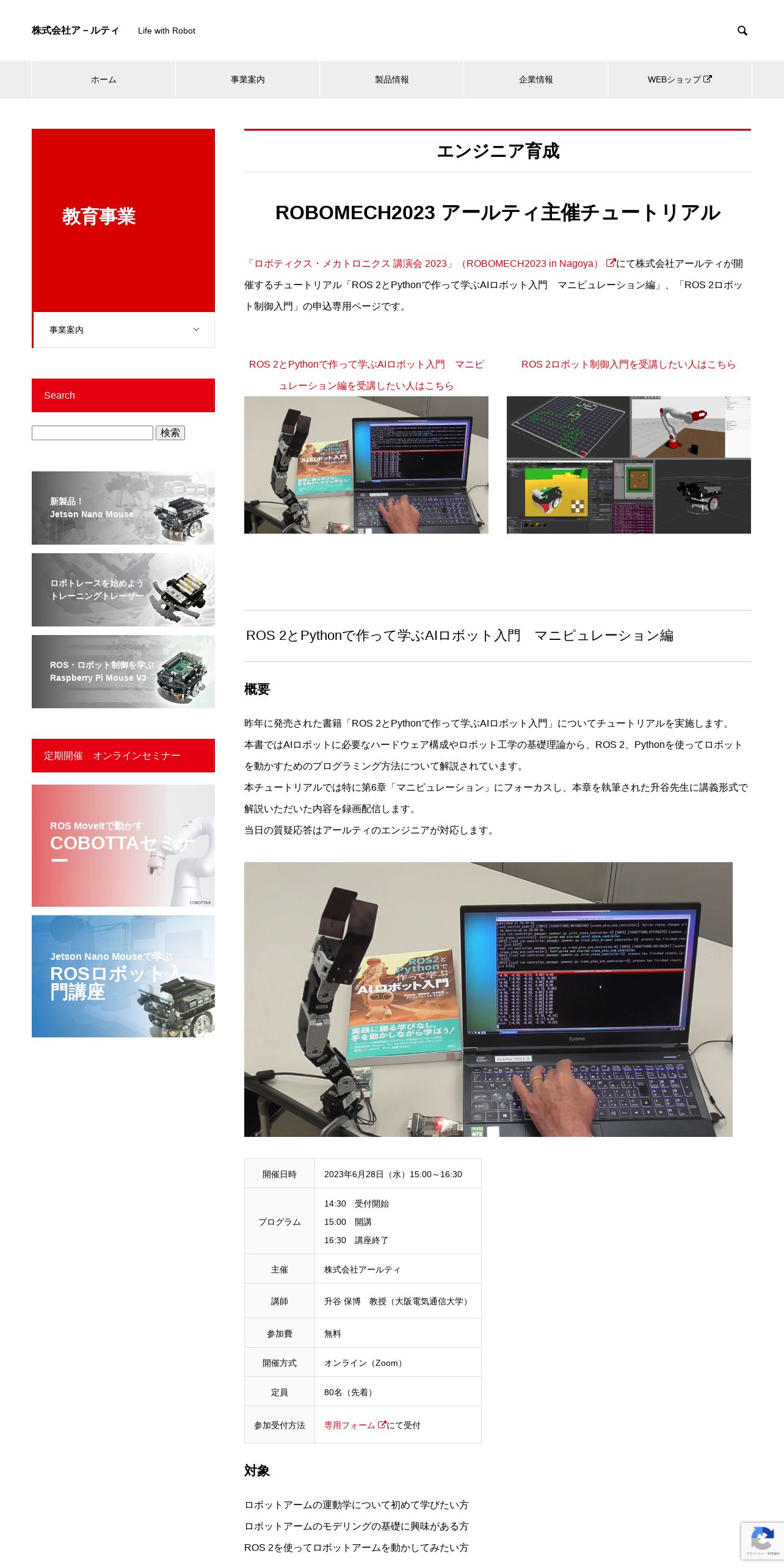 https://rt-net.jp:443/service/20230628robomech-tutorial/