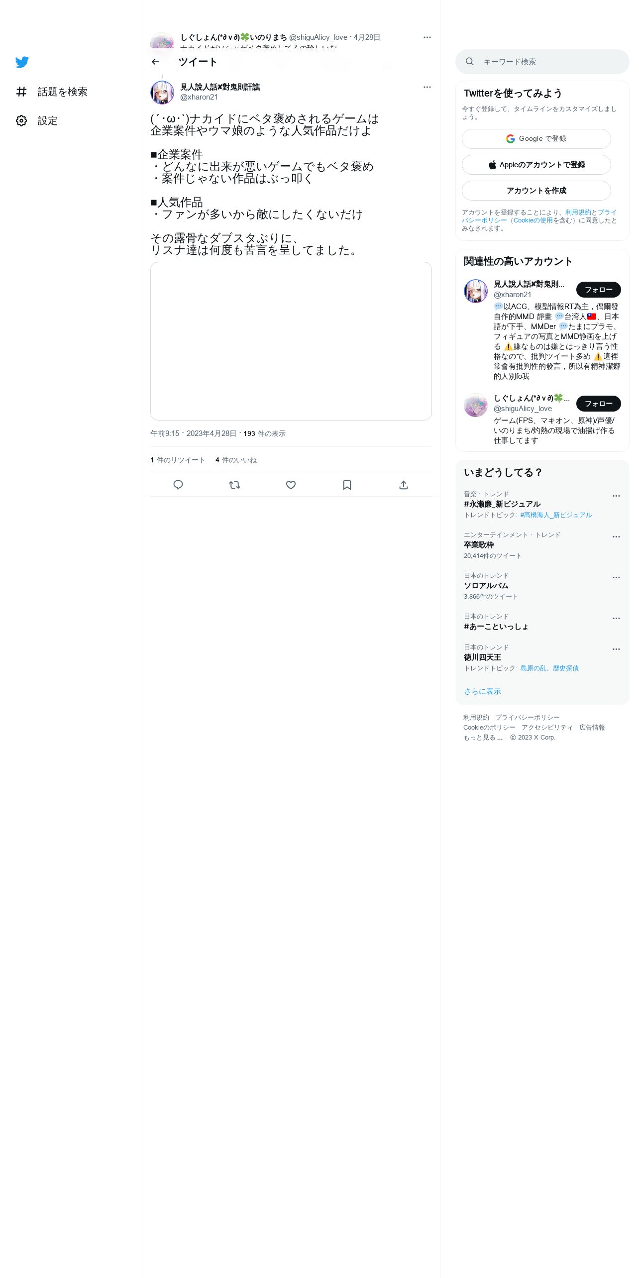 取得元URL: https://twitter.com:443/xharon21/status/1651877855733903360