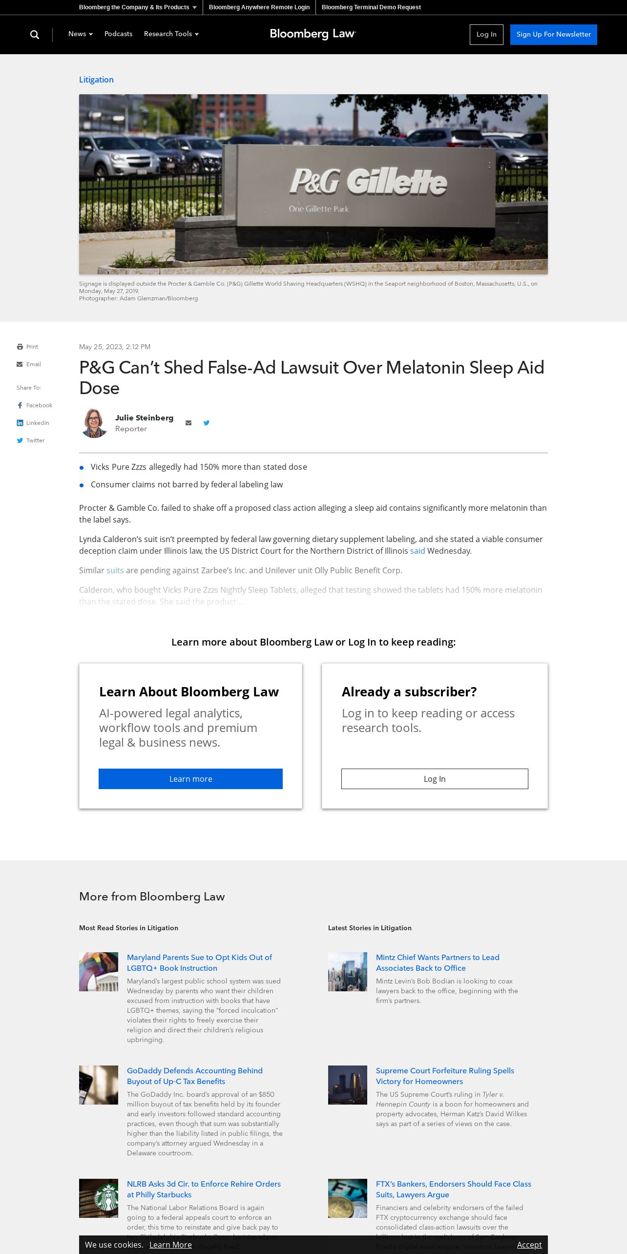 https://news.bloomberglaw.com:443/litigation/p-g-cant-shed-false-ad-lawsuit-over-melatonin-sleep-aid-dose
