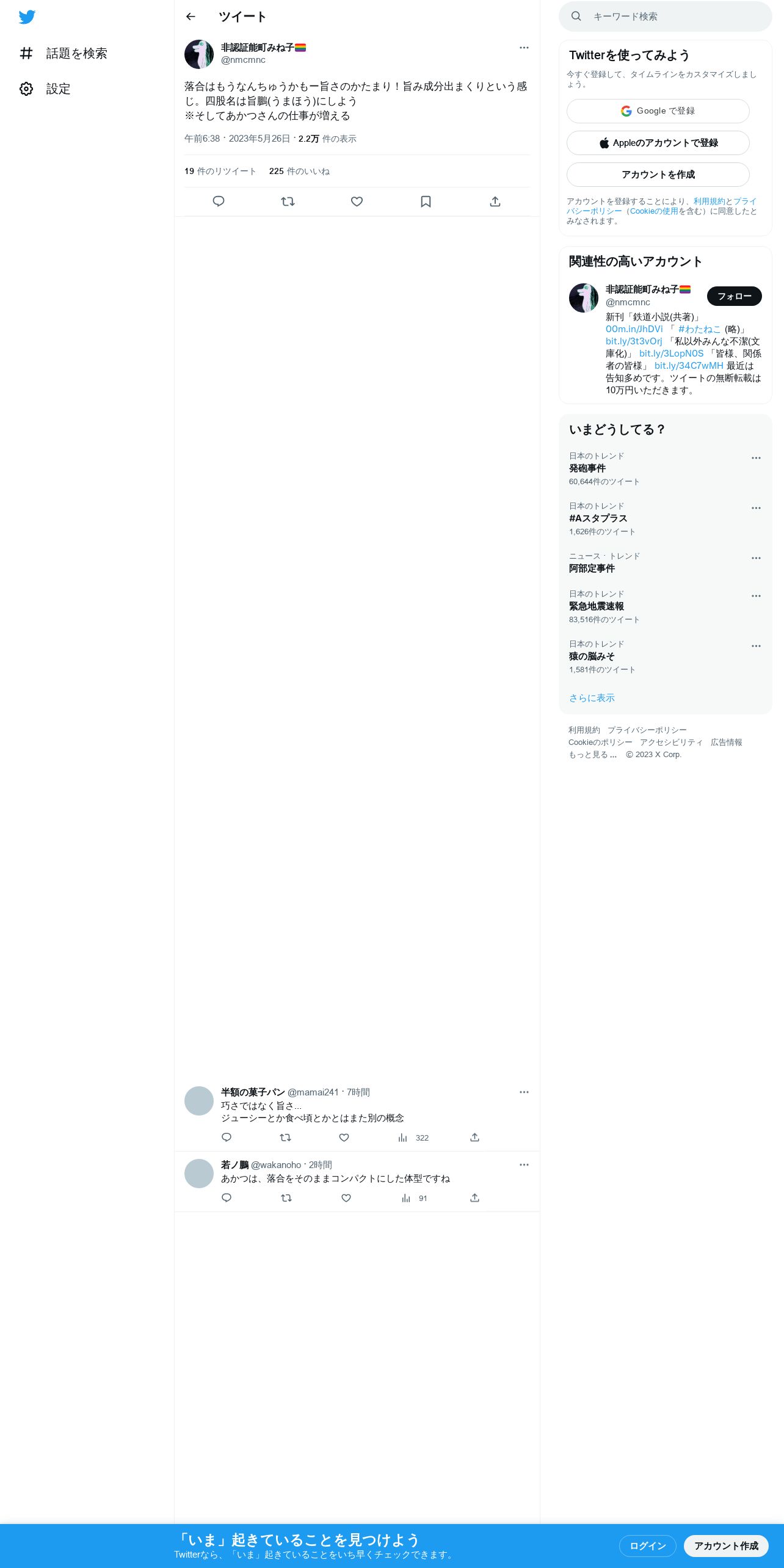 取得元URL: https://twitter.com:443/nmcmnc/status/1661985013888610304