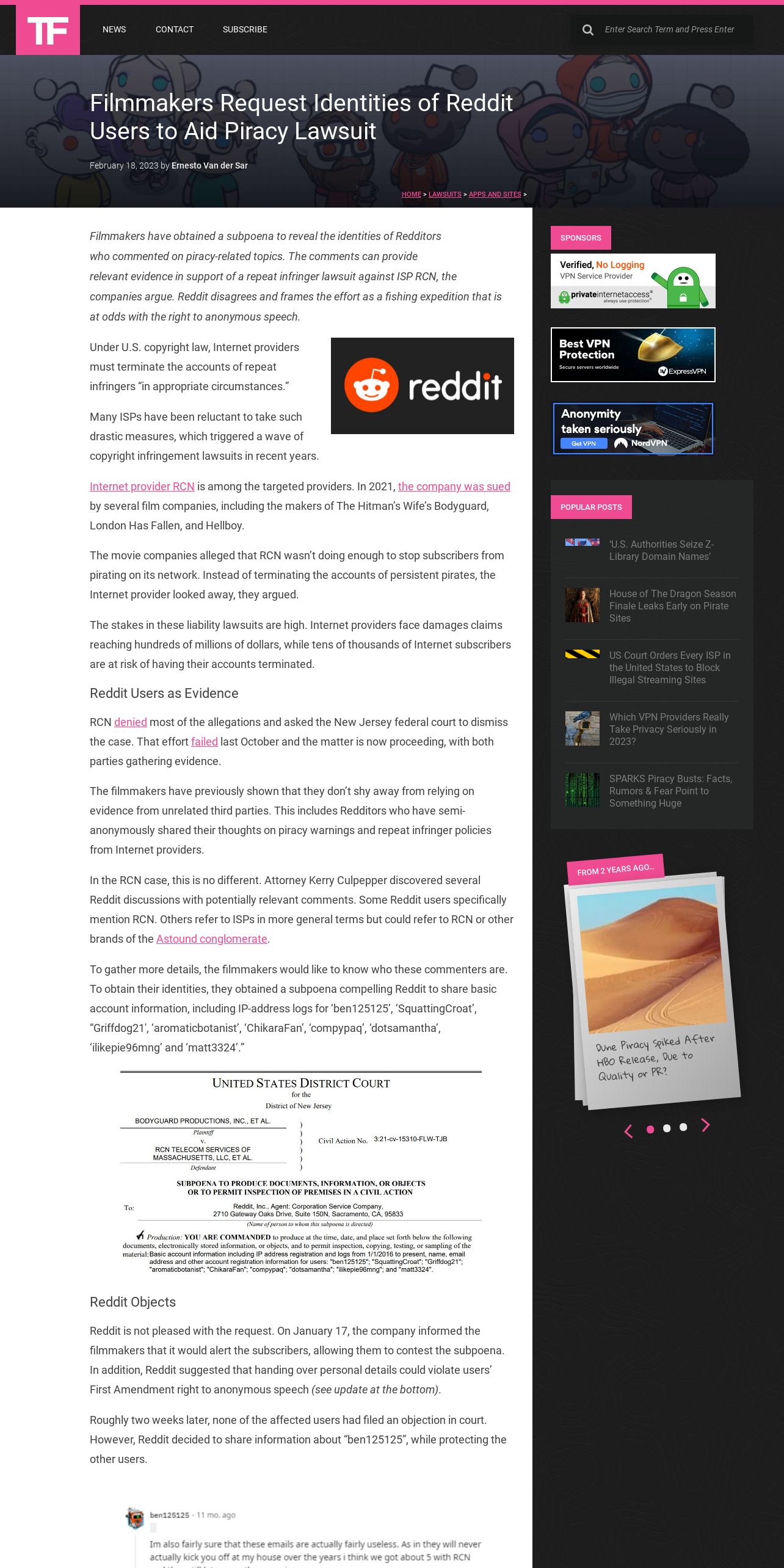 https://torrentfreak.com:443/filmmakers-request-identities-of-reddit-users-to-aid-piracy-lawsuit-230218/