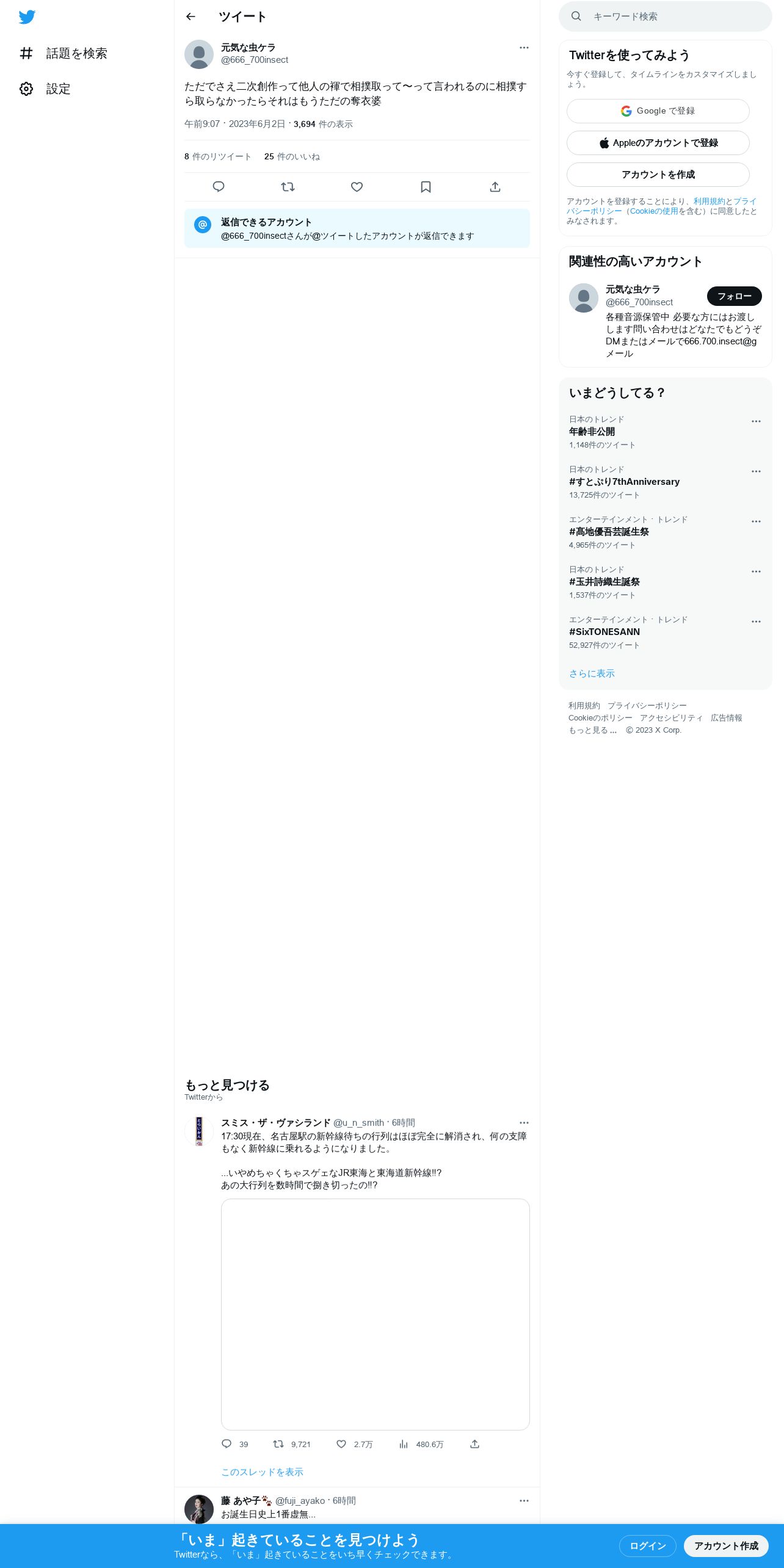 取得元URL: https://twitter.com:443/666_700insect/status/1664559355767980036