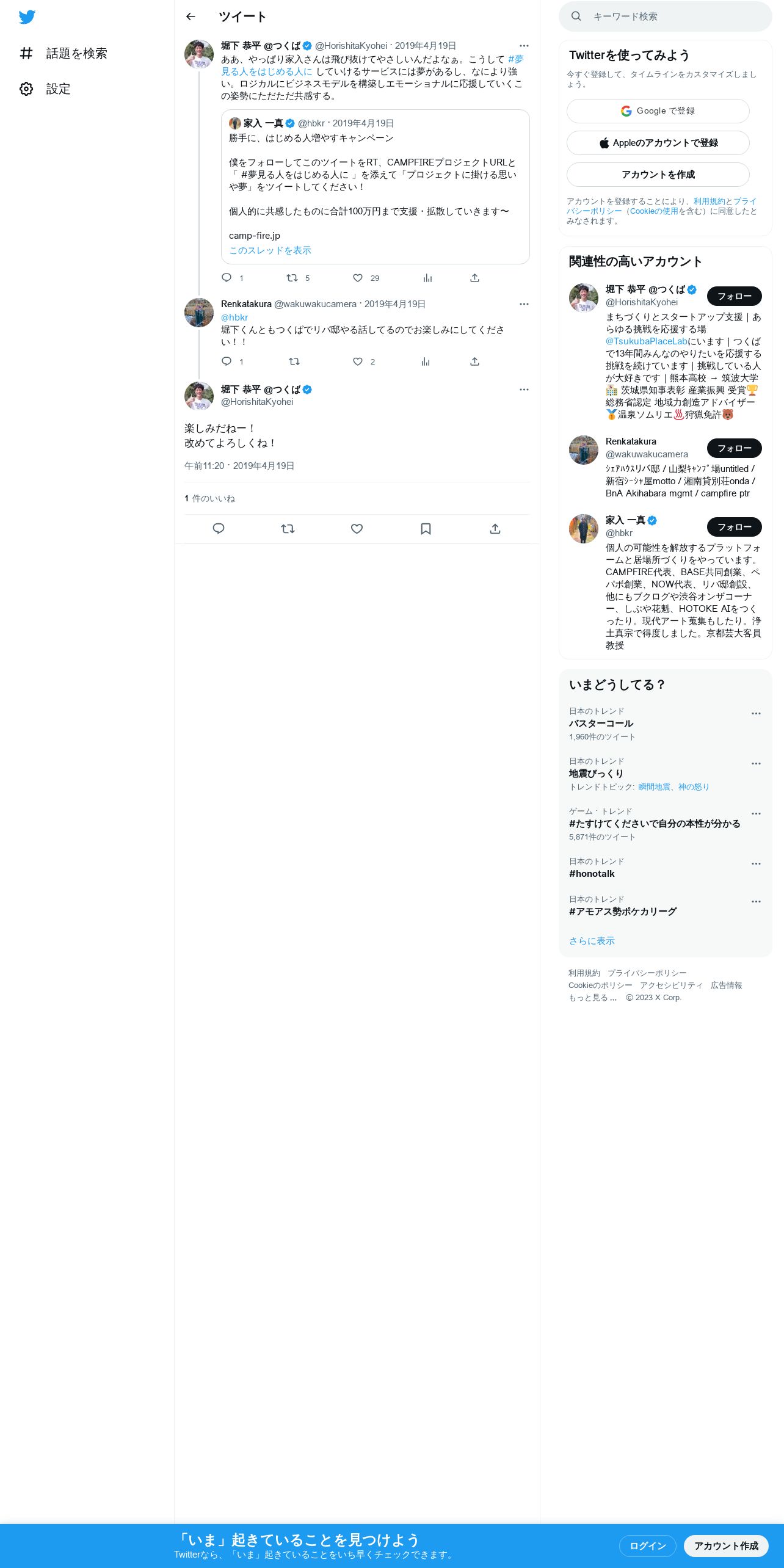 取得元URL: https://twitter.com:443/HorishitaKyohei/status/1119199043647754240