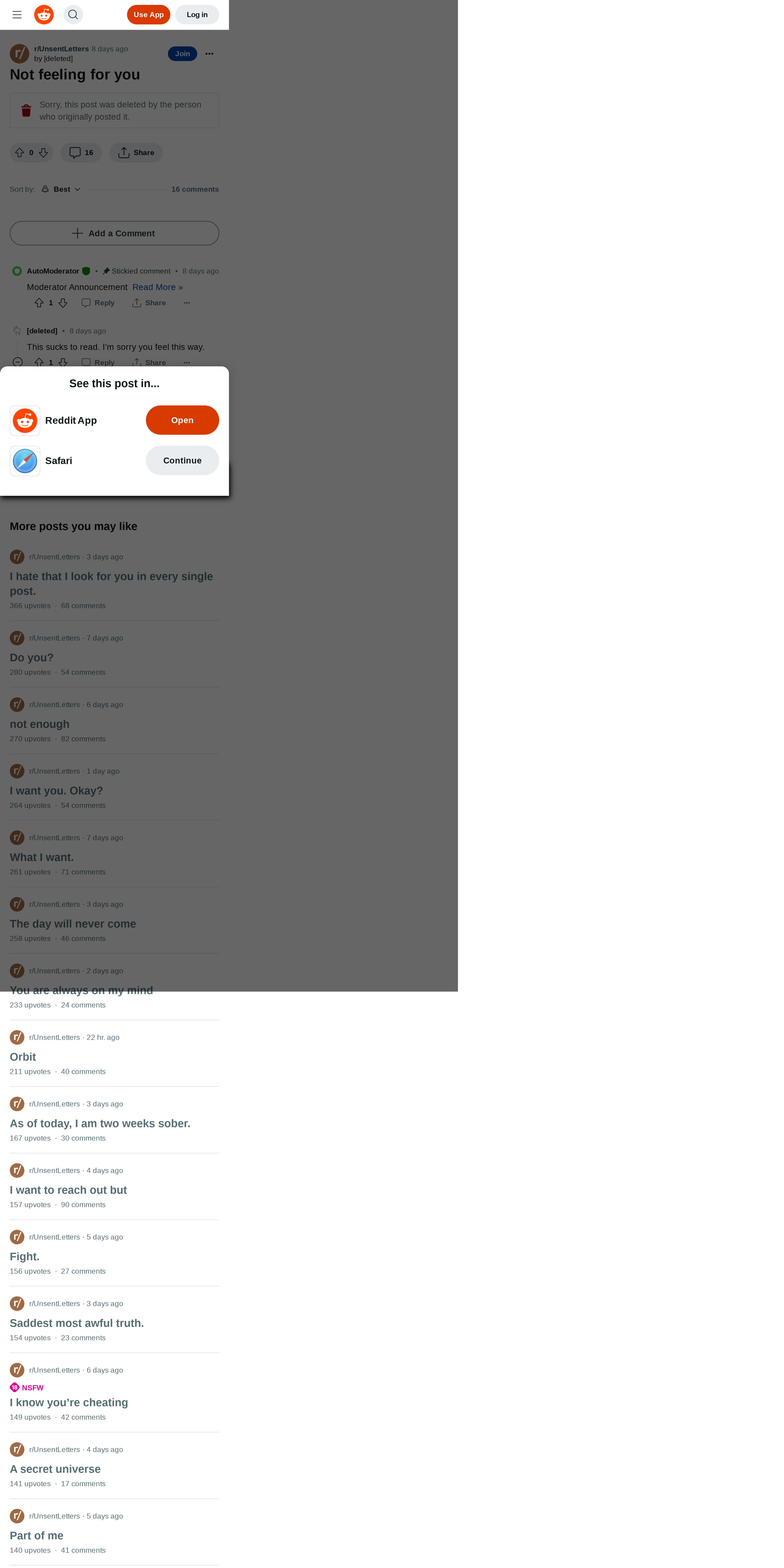 https://www.reddit.com:443/r/UnsentLetters/comments/13ttin7/not_feeling_for_you/