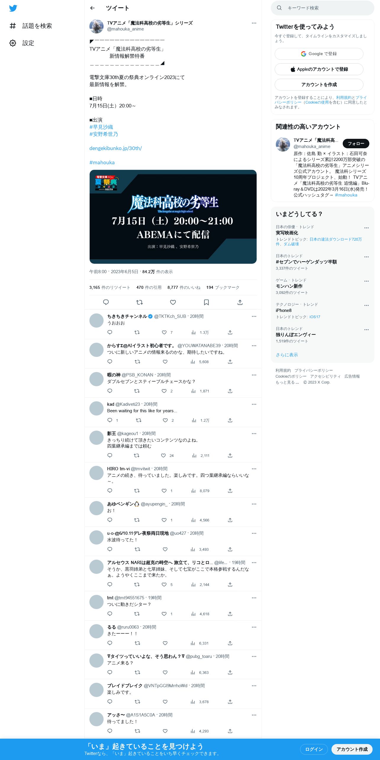 https://twitter.com:443/mahouka_anime/status/1665629532714303488