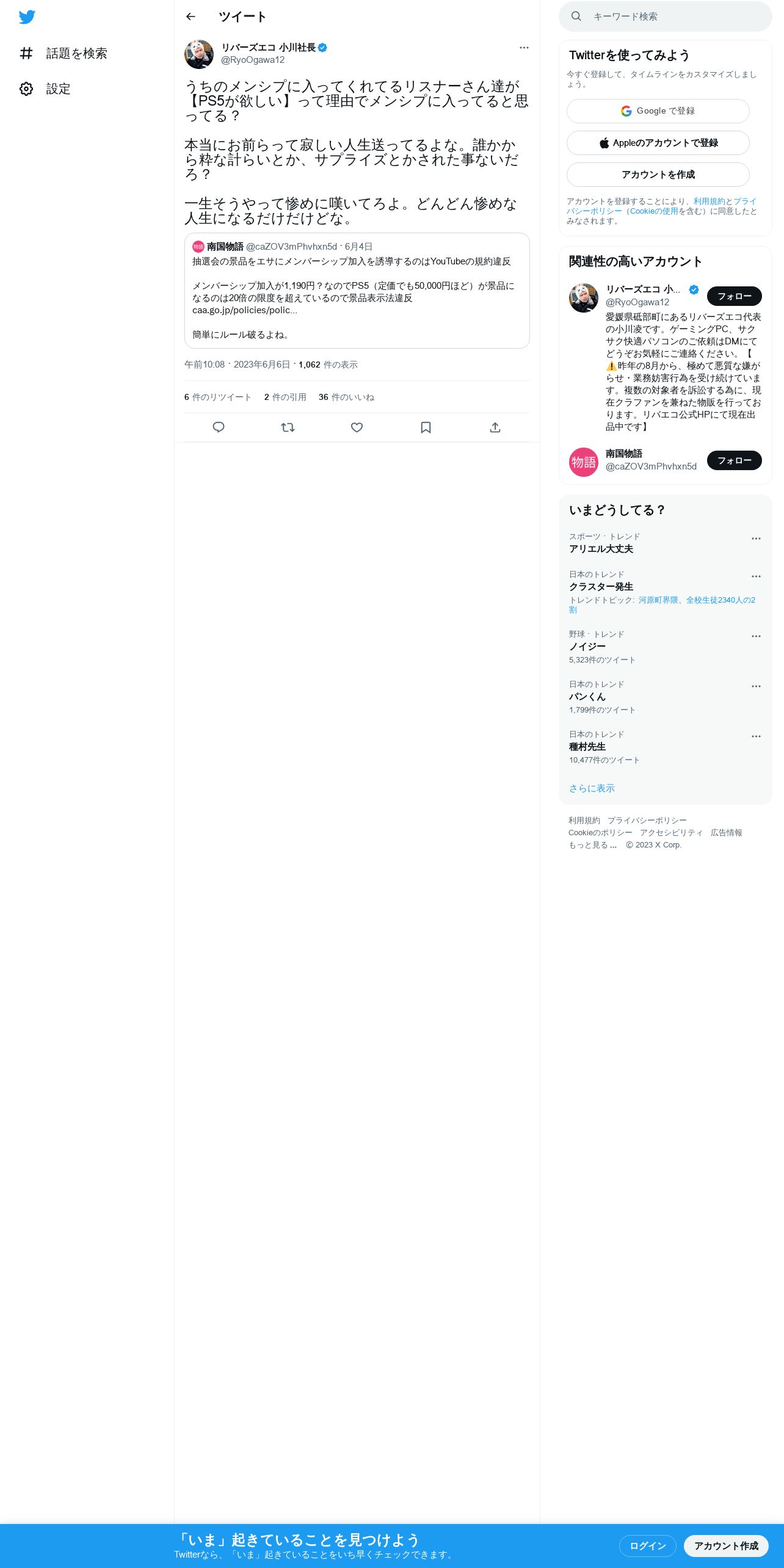 https://twitter.com:443/RyoOgawa12/status/1666024312883777536?cxt=HHwWgMDQyaOS9J4uAAAA