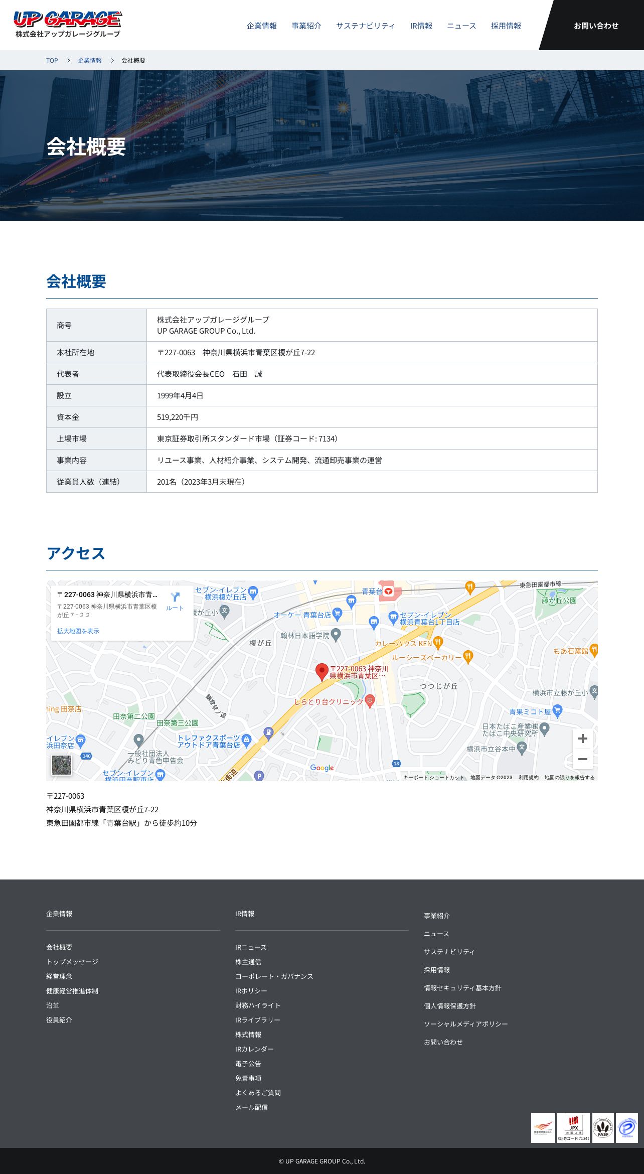 取得元URL: https://www.upgarage-g.co.jp:443/company/outline/
