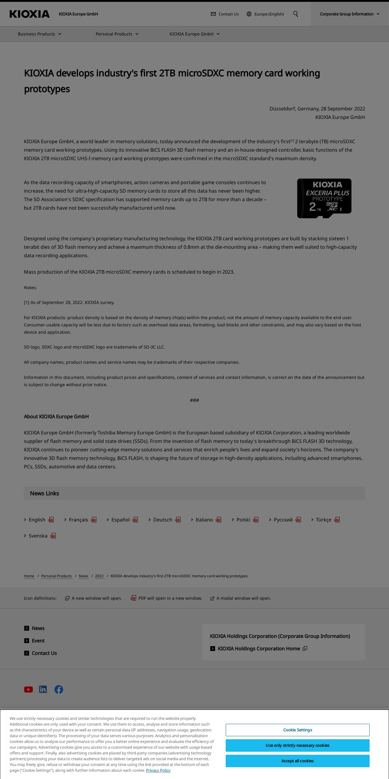 https://europe.kioxia.com:443/en-europe/personal/news/2022/20220928-1.html