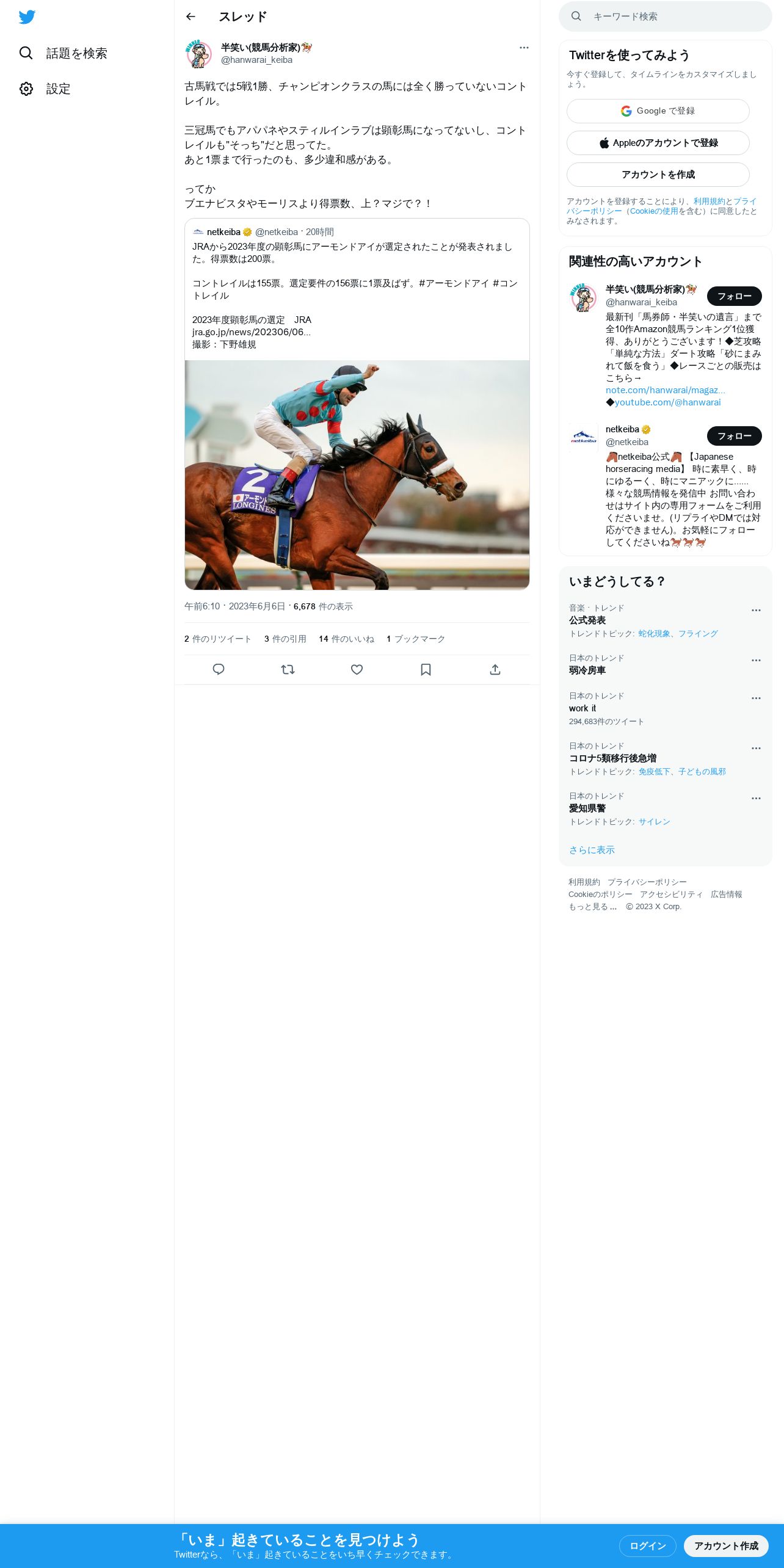 https://twitter.com:443/hanwarai_keiba/status/1665964472585039872