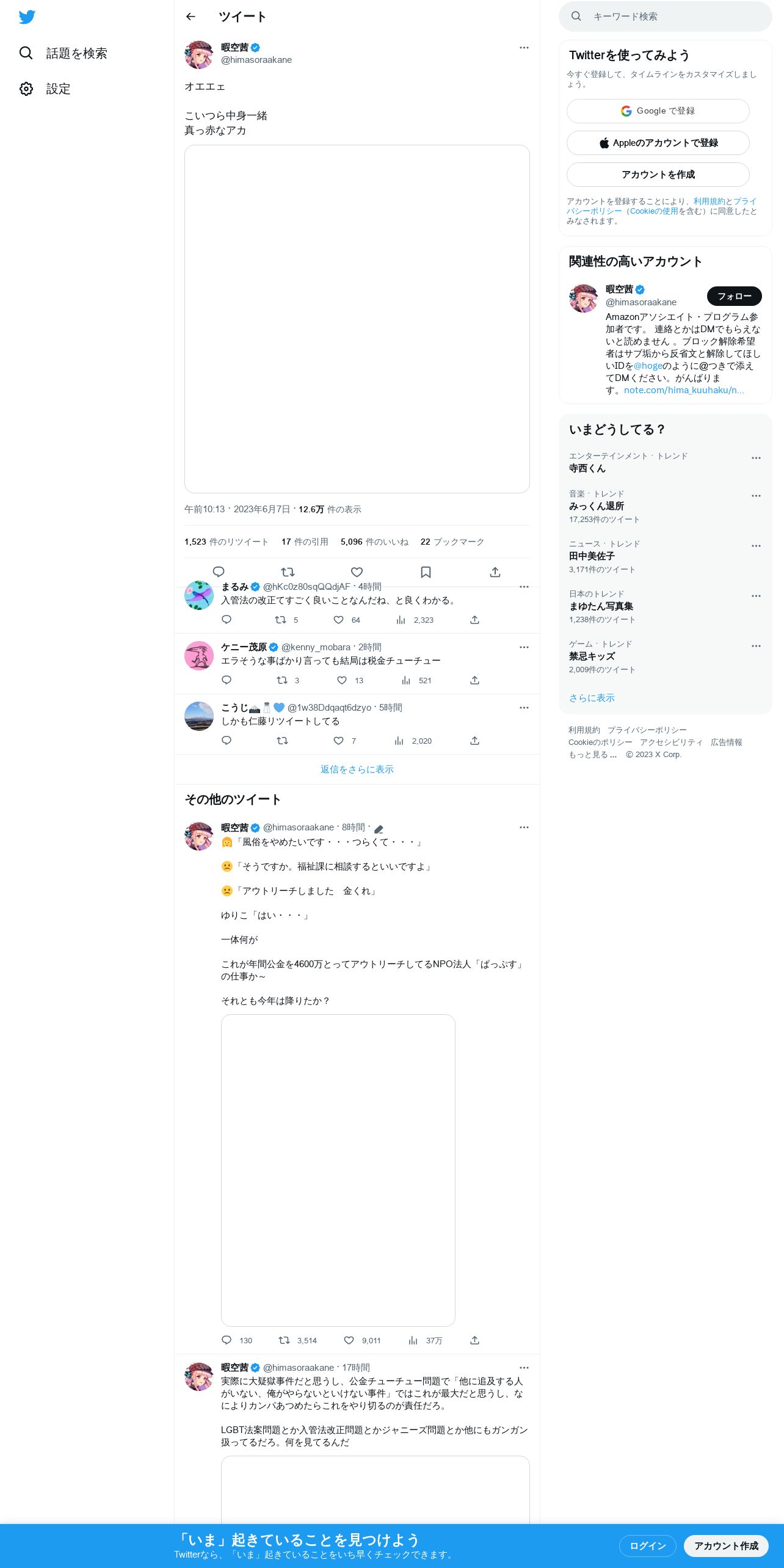 取得元URL: https://twitter.com:443/himasoraakane/status/1666387800634318849?cxt=HHwWgoDTrYa4maAuAAAA