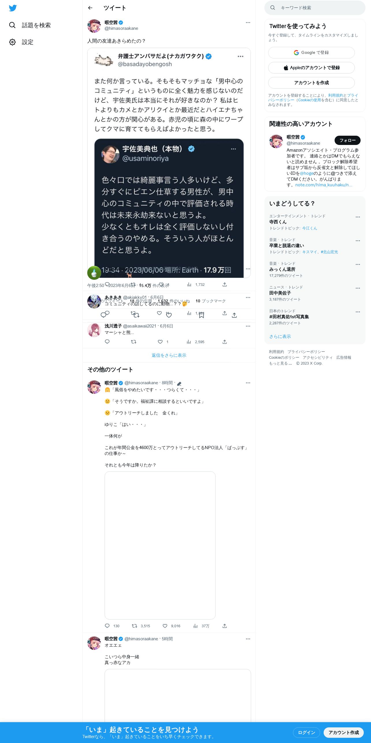 https://twitter.com:443/himasoraakane/status/1666095176320950274?cxt=HHwWhIDRqYmvlJ8uAAAA